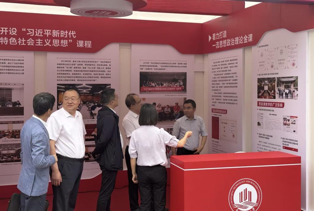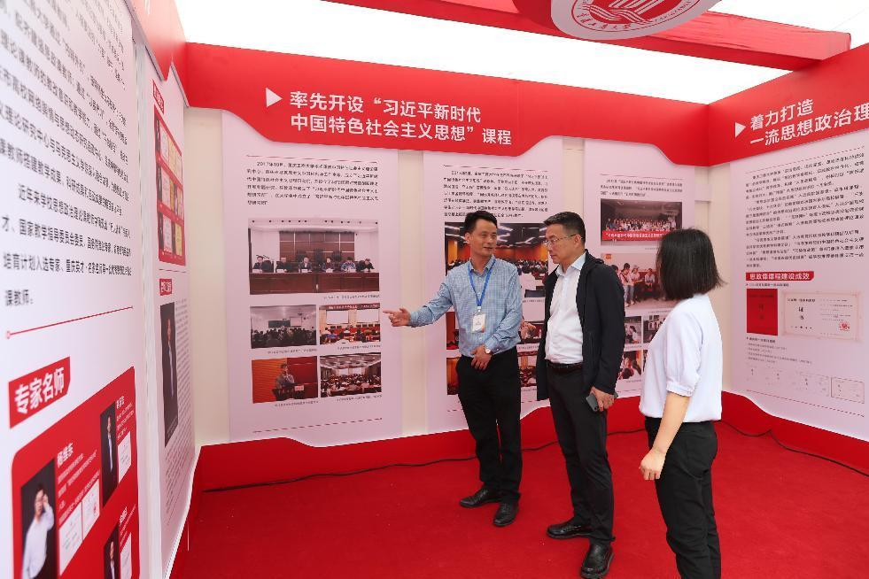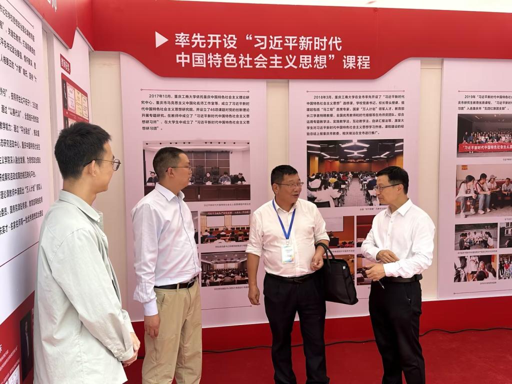 万象城官网从培养“六要”思想政治理论课好老师、率先开设“习近平新时代中国特色社会主义思想”课程、着力打造一流思想政治理论金课等方面现场展示了马克思主义学院思政课建设阶段性成果。开幕当日,教育部基础教育司副司长游森、重庆市教委副主任李劲渝等领导来到万象城官网展位,考察万象城官网思政课建设,高度肯定万象城官网思政课建设取得的成绩。