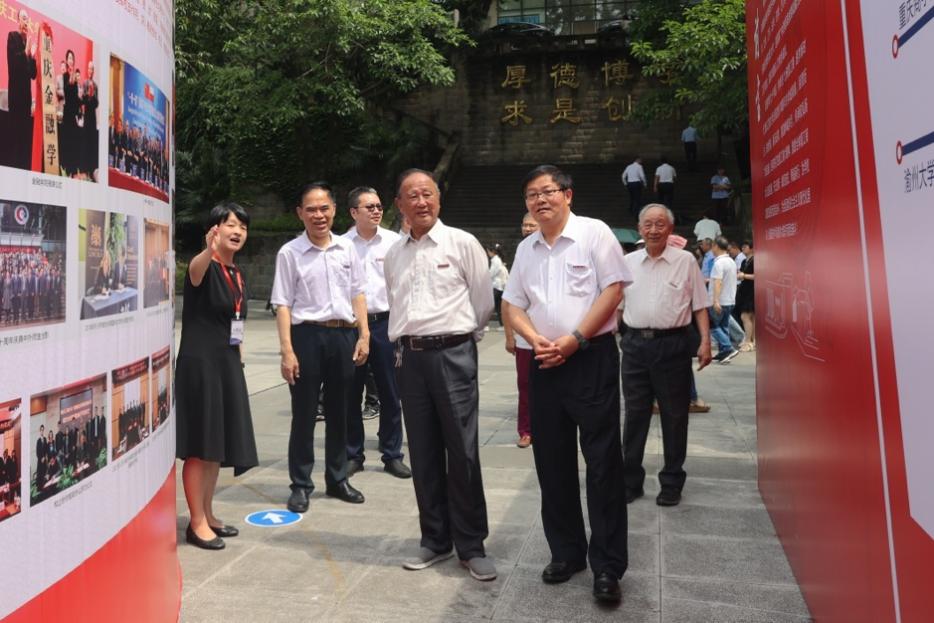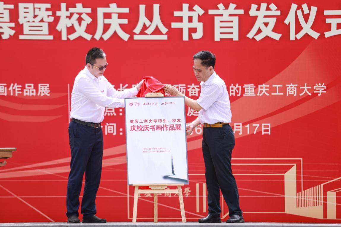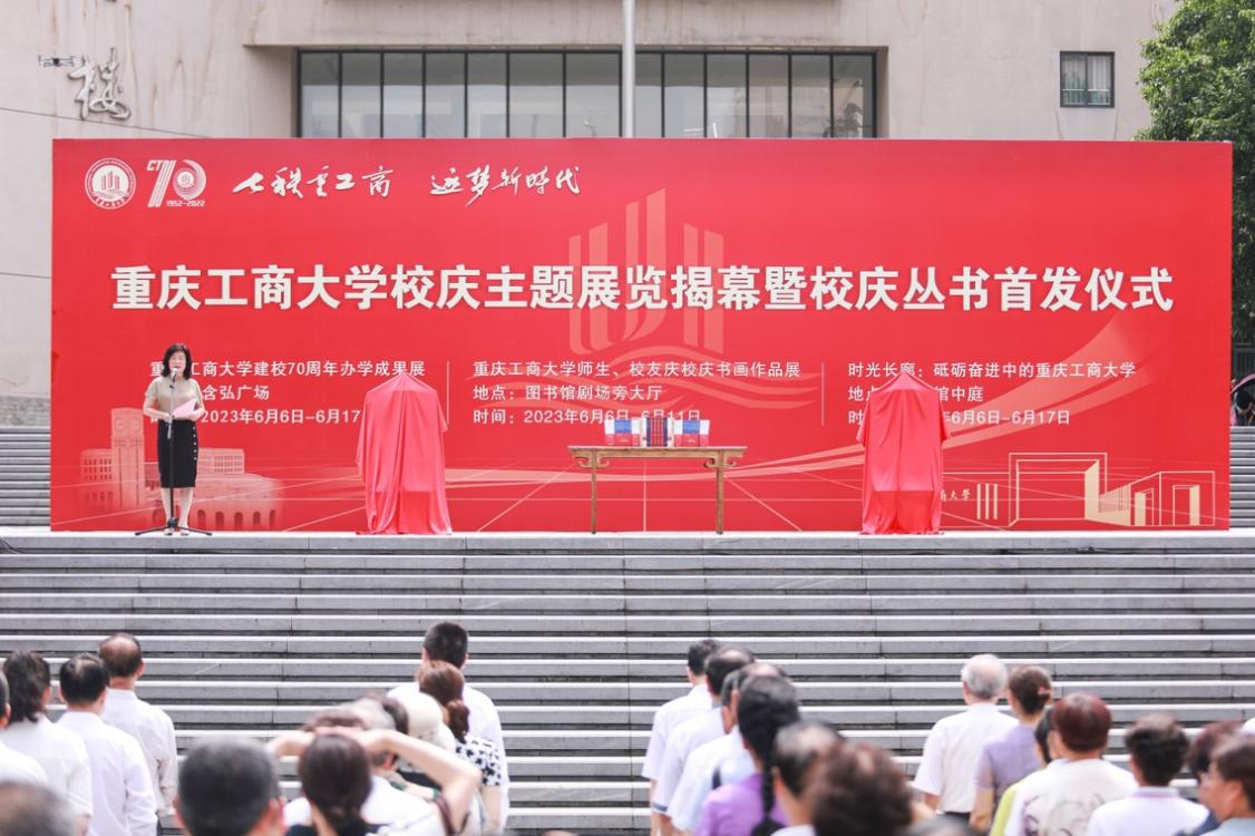 6月6日上午11点,学校在含弘广场隆重举行“七秩重工商 逐梦新时代”校庆主题展览揭幕暨校庆丛书首发仪式。学校党委书记李志雄,校长温涛,党委副书记宋豫,党委常委、副校长陈运超、张波、李国军、赵骅等出席仪式。原重庆商学院党委书记张柏村,原渝州大学校长戴宏民,原万象城娱乐awc线路党委书记周希贤,原万象城娱乐awc线路校长王崇举,原万象城娱乐awc线路副校长廖元和、黄朗和离退休教职工代表受邀参加仪式。此外,学校各二级单位负责人、教职工代表、校友代表和学生代表也参加了仪式。仪式由宋豫主持。