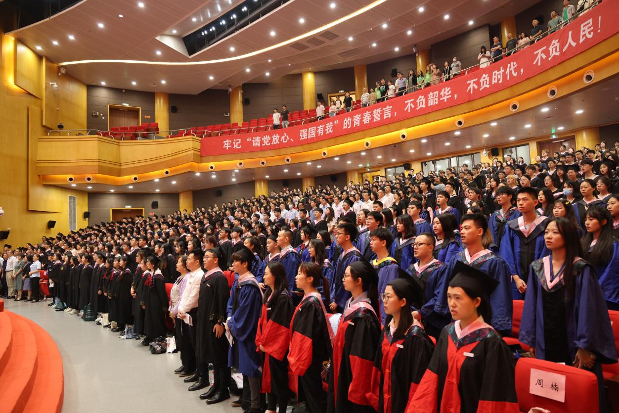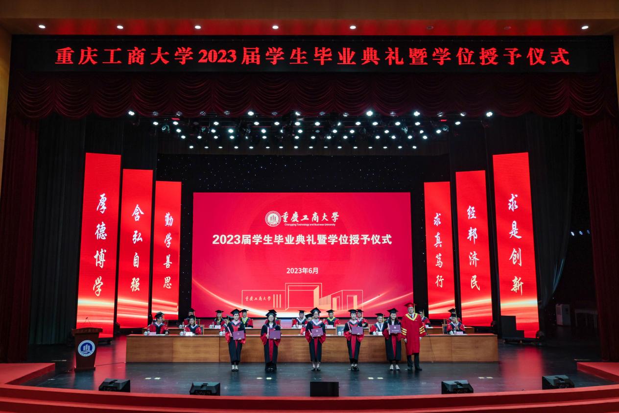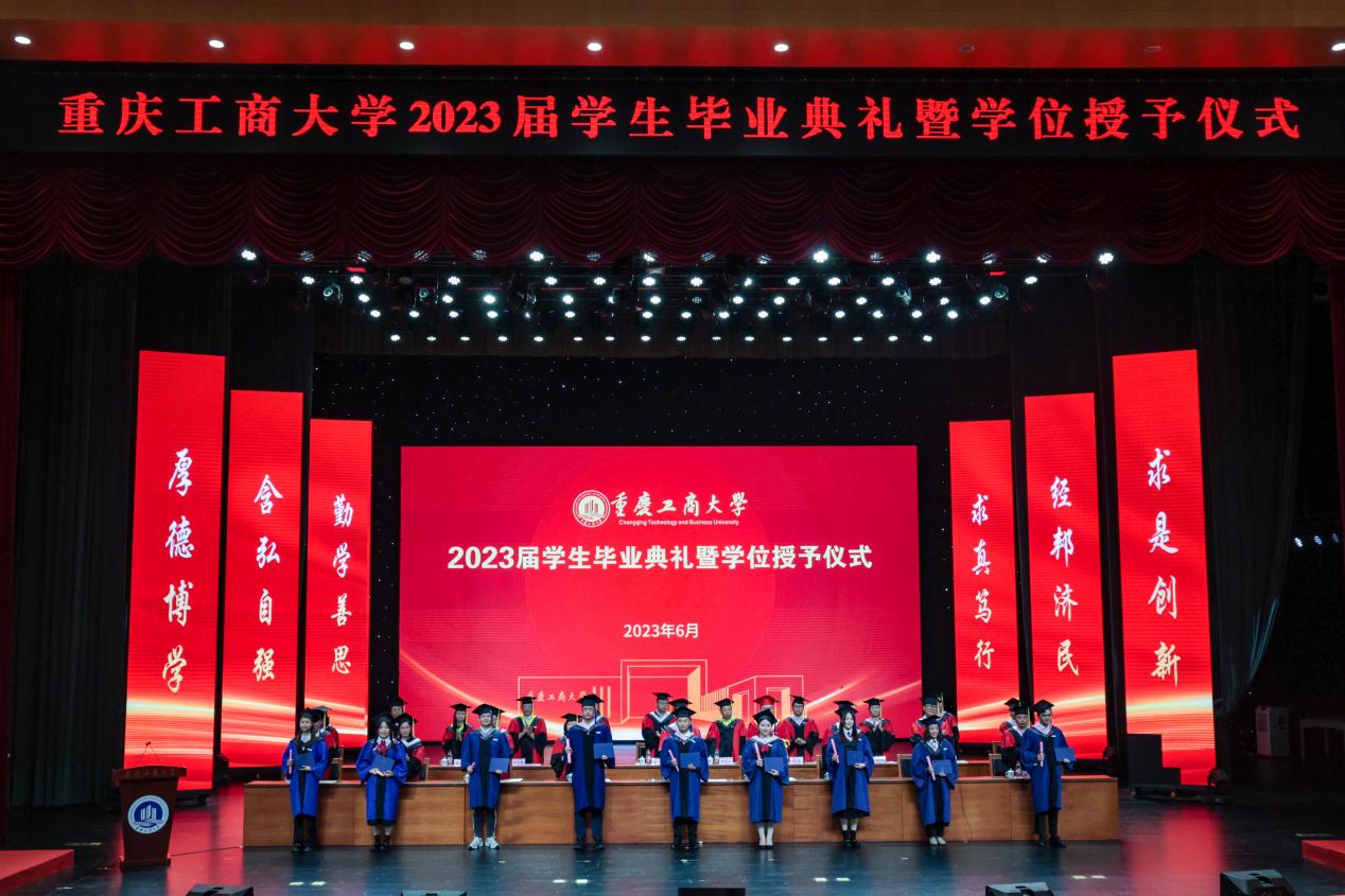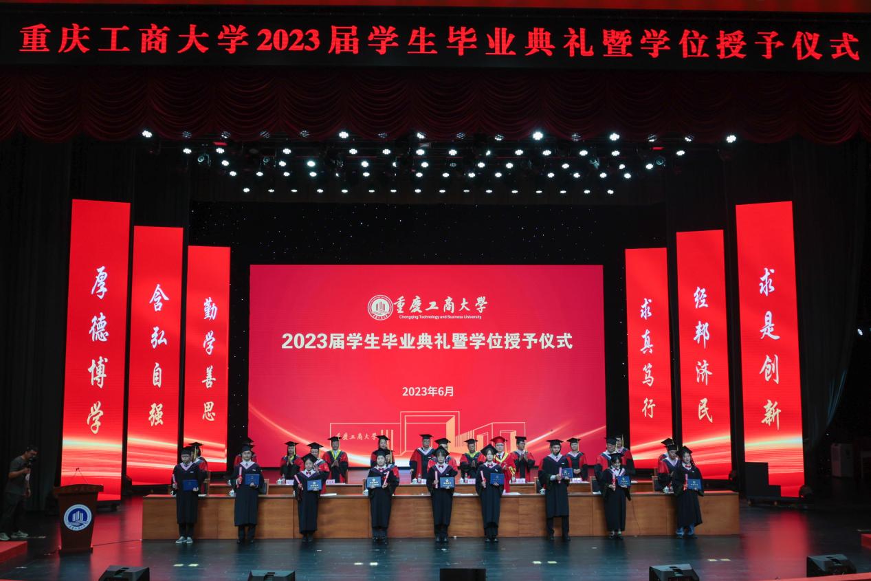 盛夏光年,骊歌悠远。2023届学生毕业典礼暨学位授予仪式于6月21日上午在万象城娱乐awc线路剧场隆重举行。本次毕业典礼采取“线上+线下”相结合的形式,现场典礼与网络直播同时进行。今年,共有6079名本科生、1161名研究生顺利获得了学士、硕士和博士学位,画上了在重工商大学业生涯的圆满句号。今天之后,他们将怀揣梦想,奔赴远方,开启人生的新征程。