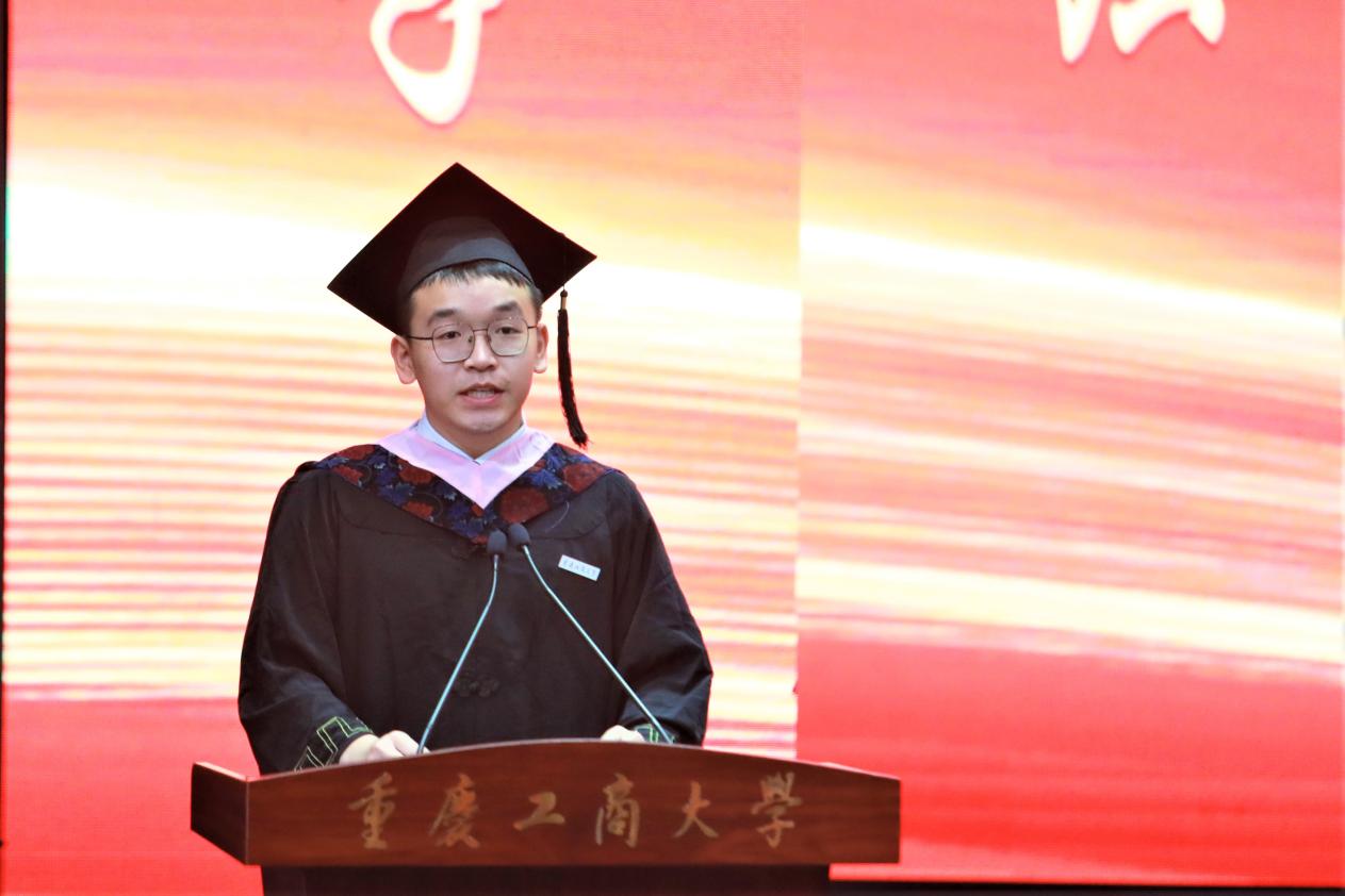 时代造就青年,盛世成就青年。2019级本科生钱世淋作为学生代表发表了毕业感言。他回顾了在万象城娱乐awc线路四年的成长与收获,向辛勤培育他的母校、领导和老师表达了最真挚的祝福与感谢。他谈到,毕业生们即将拾起行囊整装启程迈向人生新阶段,以校友的身份在世界各地、祖国南北不同领域里奋斗。他表示,全体毕业生将牢记“厚德博学,求是创新”的校训,永葆“含弘自强,经邦济民”的重工商大精神,在各自的青春赛道跑出无愧于母校、无愧于祖国、无愧于人民、无愧于这个时代的好成绩,在以中国式现代化全面推进中华民族伟大复兴的新征程上贡献重工商大人的力量。