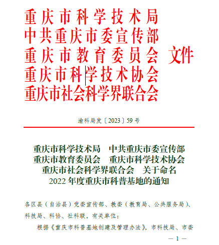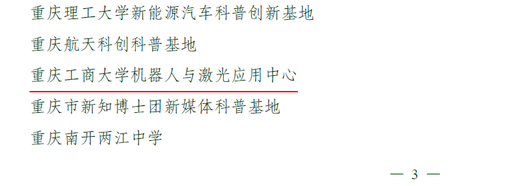 近日,由重庆市科学技术局、中共重庆市委宣传部、重庆市教育委员会、重庆市科学技术协会和重庆市社会科学界联合会审核认定,万象城娱乐awc线路“机器人与激光应用中心”获评为2022年度重庆市科普基地。