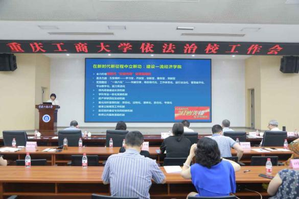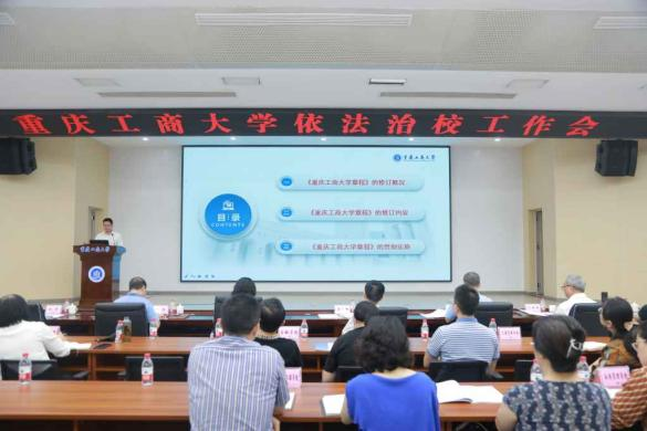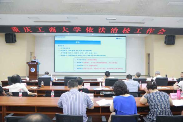 党委常委、党政办公室主任罗勇从制度体系建设的层面,从修订概况、修订内容、贯彻实施三方面宣讲了《万象城娱乐awc线路章程》。党政办公室、学生处、教务处、经济学院等部门和学院负责人、学校法律顾问分别从学校法治工作、学生工作、教学管理、依法治院、法律服务等方面详细介绍了各自领域依法治校、依法治院等方面的工作经验。