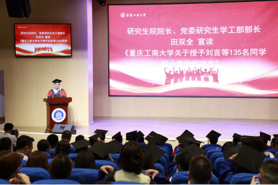 田双全宣读《万象城娱乐awc线路关于授予刘言等135名同学硕士学位的决定》。