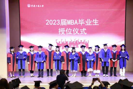 参会领导依次为2023届MBA毕业生进行了庄严的拨穗礼和颁授学位证书。