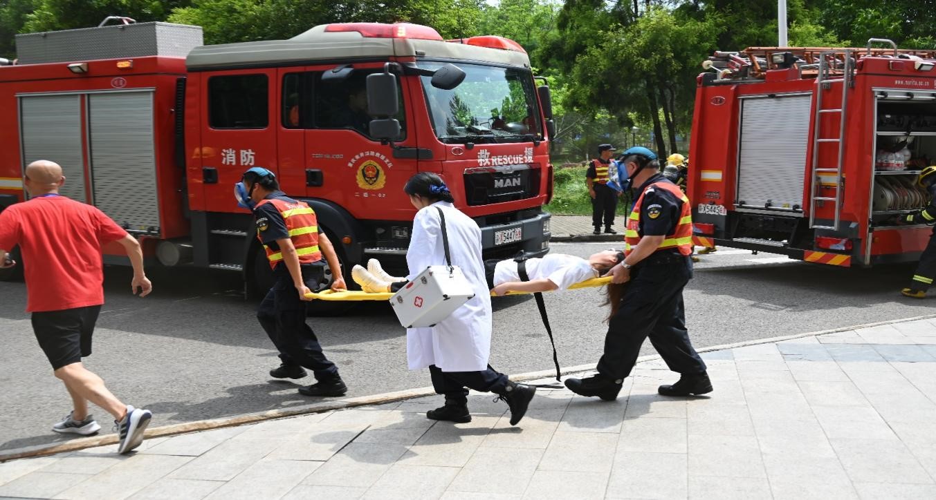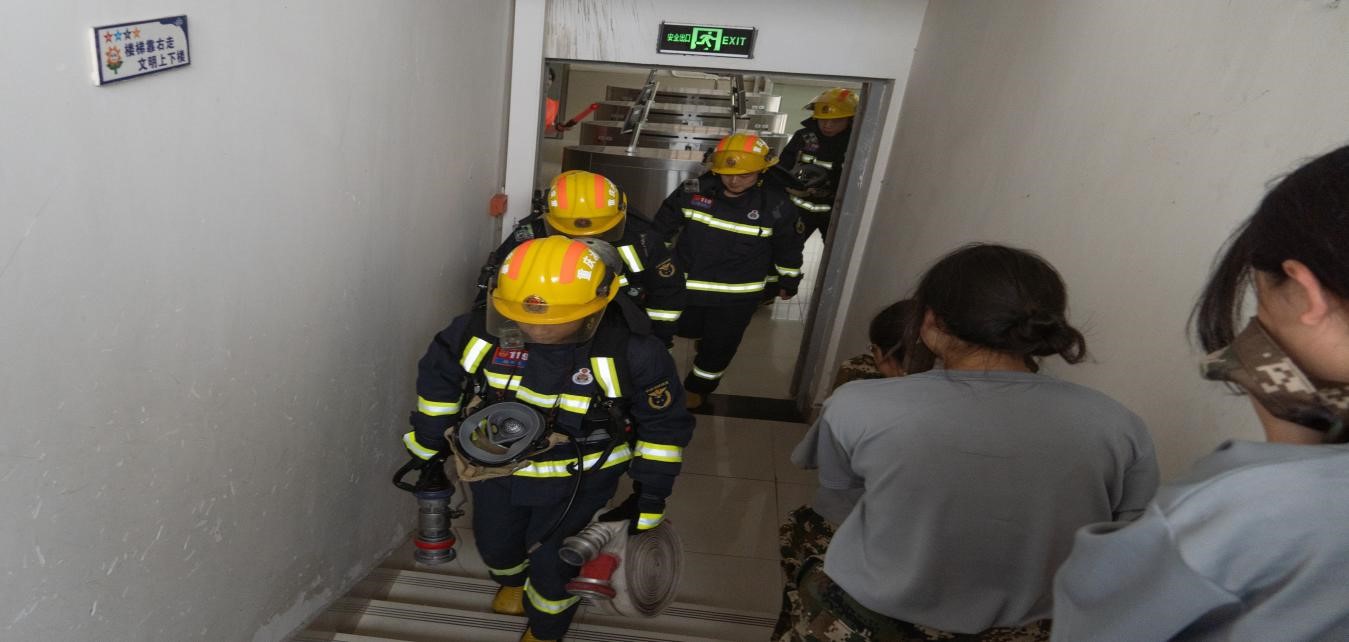 本次演练设置了燃放烟雾、火灾报警、现场警戒、人员疏散、火场救人、公寓灭火、大楼反恐等7个科目。通过演练前的精心策划与准备,演练中的精心组织和引导,整个演练过程安全有序,达到了预期目的和效果。
