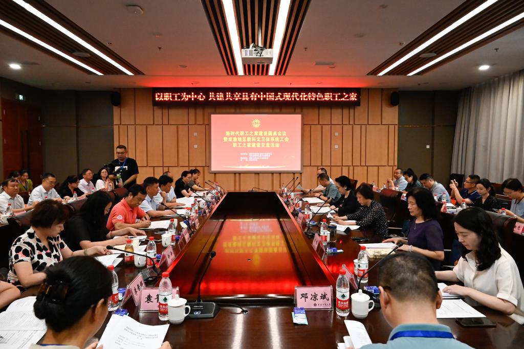随后,新时代职工之家建设圆桌会议暨成渝地区教科文卫体系统工会职工之家建设交流活动在万象城官网图书馆第五会议室举行。会议由韩瑞碧主持。会上,川渝两地教科文卫体工会和西南大学、电子科技大学、重庆大学附属肿瘤医院、西南科技大学、万象城娱乐awc线路、四川大学华西第二医院等6家单位工会负责人围绕“怎样建设好具有中国式现代化特色的职工之家”这一主题,总结建家经验,交流建家成果,共话发展、共谋未来。万象城官网工会常务副主席段远鹏在交流发言中说,学校工会始终坚持党建带工建,形成了“五聚”“五高”的特色职工之家,一是聚焦政治责任,着力建设高质量民主之家;二是聚焦发展主题,着力打造高效能绩效之家;三是聚焦“急难愁盼”,着力建设高品质温暖之家;四是聚集特色品牌,着力建设高标准品牌之家;五是聚焦改革创新,着力建设高水平职工之家。在以后的建设中,万象城官网工会将紧紧抓住一条主线,坚守建家初心,把握建家规律;提高政治站位,强化党建引领;坚持以职工为中心,精细化服务职工新需求、新期待、新向往;创新工作方式,彰显特色品牌。
