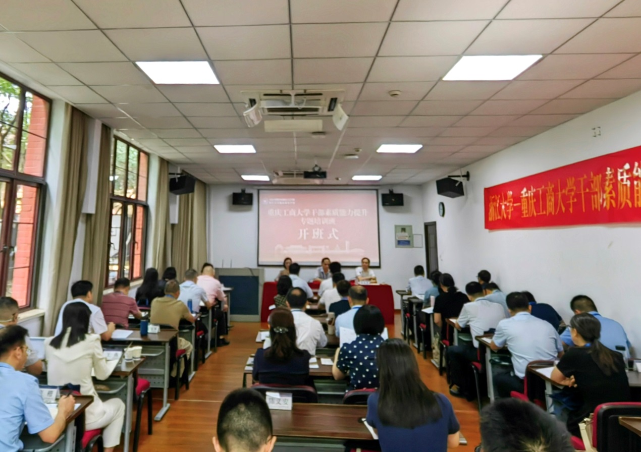 李志雄作开班动员讲话。他指出,为切实发挥中层干部作为校内各项工作“四梁八柱”的效用,有效提升素质能力及工作水平,有需要也有必要“走出校门”进行集中学习与交流,以国内“双一流”高水平学府浙江大学为标杆,吸取经验融汇己身,打造具有工商特色的高水平、高素质、高效用的“三高”干部队伍。学校党委精心筹办此次培训班,是提升干部理论水平和实践能力的宝贵机会。李志雄对参训学员提出三点要求:一是要处理好身份转入与转出的关系,放下身段转换角色,踏踏实实做个学生;也要在本职工作中及时履行职责,确保学以致用,实现工作、学习两不误。二是要处理好课堂内外的关系,在课内沿循老师节奏,将讲授的新理念、新方法做到及时思考、对照与转化;在课外珍惜机会,加强学员间的合作交流,消除偏见和误解,增进共识和认同,共同探索工作与学科建设中的优化融合进路。三是要处理好有用与无用的关系,既要深耕专业领域,消化对自身有直接帮助的“有用”专业知识为己所用,做好专业之中的“行家”;也要广泛吸收各通类知识,利用好当前看似“无用”的通类知识增强综合素质能力,以期触类旁通、融汇进步。
