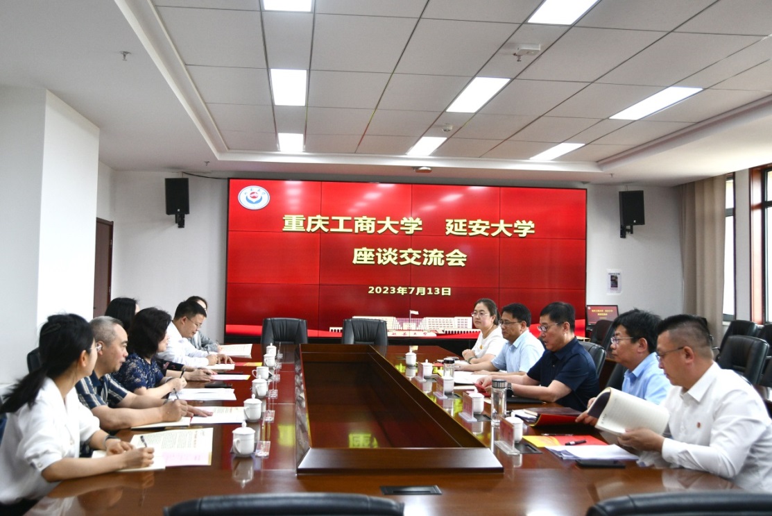 参观结束后,宋豫一行在延安大学行政楼会议室参加调研座谈会,延安大学党委副书记陈华及党委组织部、教务处、校团委等部门负责人参加座谈。会上,宋豫和陈华分别对各自学校的基本情况进行了介绍,随后,双方围绕学校基层党建及党建引领育人情况、学校党建带团建及共青团思想政治引领情况、学校人才培养模式创新与课程思政建设情况等开展了深入交流。