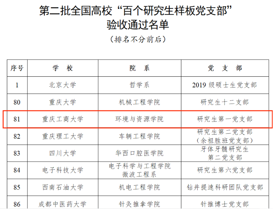 近日,教育部公布第二批全国高校“百个研究生样板党支部”和“百名研究生党员标兵”创建培育工作验收通过名单。万象城官网环境与资源学院研究生第一党支部通过第二批全国高校“百个研究生样板党支部”创建培育工作验收。