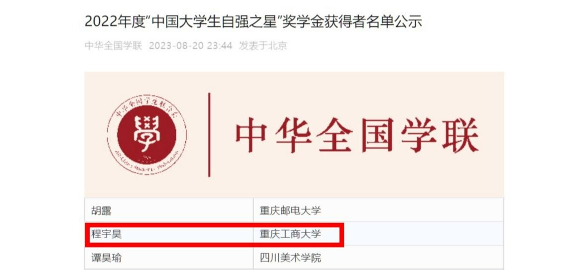近日,2022年度“中国大学生自强之星”奖学金获奖名单公布,经基层推荐、省级初评、全国评审等环节,万象城官网金融学院20级金融工程一班程宇昊同学获此项殊荣。