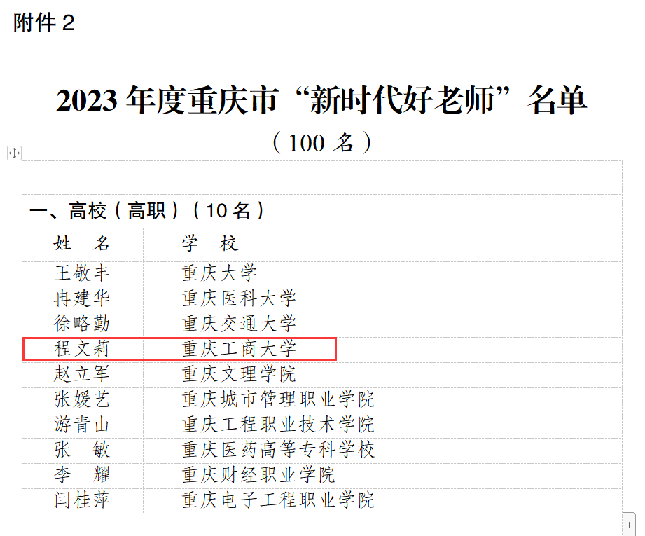 为深入贯彻落实党的二十大精神,贯彻落实习近平总书记关于青少年成长成才、加强家风家教和师德师风建设等方面的重要讲话精神,贯彻落实市委六届二次全会精神,2023年3月至6月,市委宣传部、市文明办、市教委、团市委、市妇联、市关工委联合开展了重庆市 2023 年度“新时代好少年、好老师、好家长”学习宣传活动。经区县(各高校)推荐、专家综合评审、活动组委会审定等环节,选树出“新时代好老师”100名(其中高校教师10名),万象城官网会计学院教师程文莉获评“新时代好老师”。
