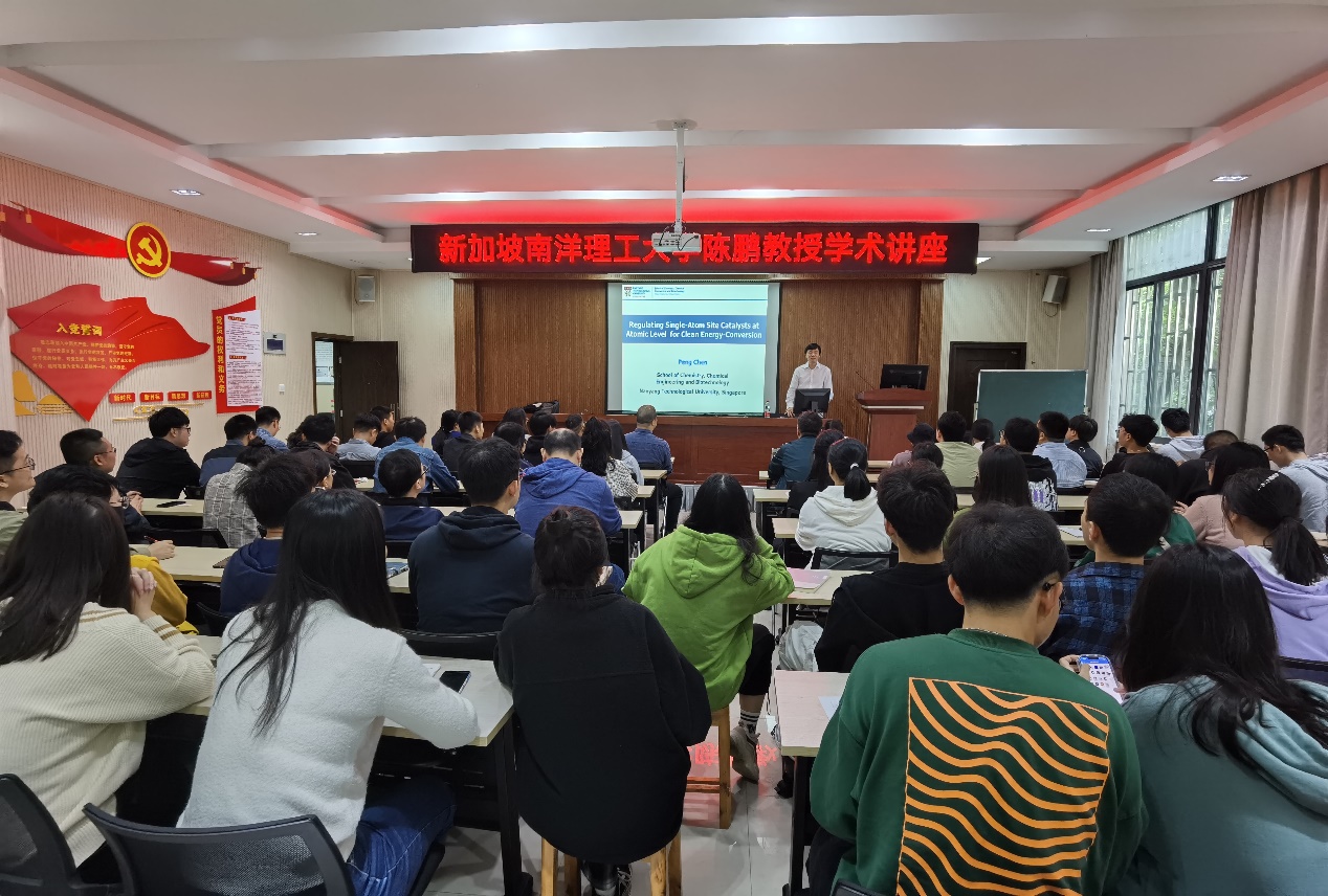 10月11日上午,南洋理工大学陈鹏教授应邀访问废油中心,作了题为《Regulating Single-atom Site catalysts at Atomic Level for Clean Energy-Conversion》(原子尺度上调节单原子位催化剂用于清洁能源转换)的学术报告,与中心师生探讨了单原子催化的研究进展和应用等相关问题。本场讲座由废油中心主任龚海峰教授主持,废油中心和环资学院科研人员、研究生等100余人出席聆听了本次讲座。