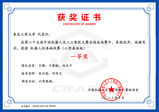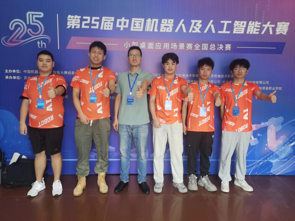 9月25日,第25届中国机器人及人工智能大赛“小型桌面应用场景赛”全国总决赛在苏州大学应用技术学院举行。四百余支来自各大高校的参赛队伍经过激烈的角逐,万象城官网AI机器人科创团队获得全国一等奖1项、二等奖1项。