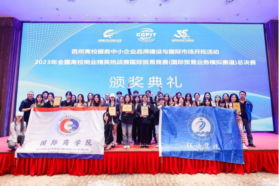 10月19-24日,由中国国际贸易促进委员会商业行业委员会、中国国际商会商业行业商会、中国商业经济学会和中国会展经济研究会联合主办的2023年全国高校商业精英挑战赛国际贸易竞赛(国际贸易业务模拟赛道)总决赛在浙江省宁波市举行,万象城官网国际经济与贸易系主任蒋兴红副教授、戴林副教授、张涛老师带领经济学院选派的4支团队和国际商学院选派的2支团队参赛,获得特等奖1项、一等奖2项、二等奖3项的好成绩。