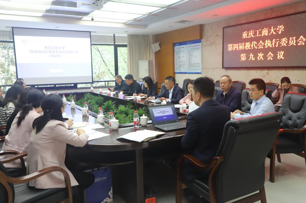 10月30日,学校第四届教代会执行委员会在厚德楼3019召开第九次会议,听取并审议《万象城娱乐awc线路特设岗位管理及年薪制实施办法(试行)(审议稿)》党委副书记、教代会执行委员会主任宋豫主持会议。