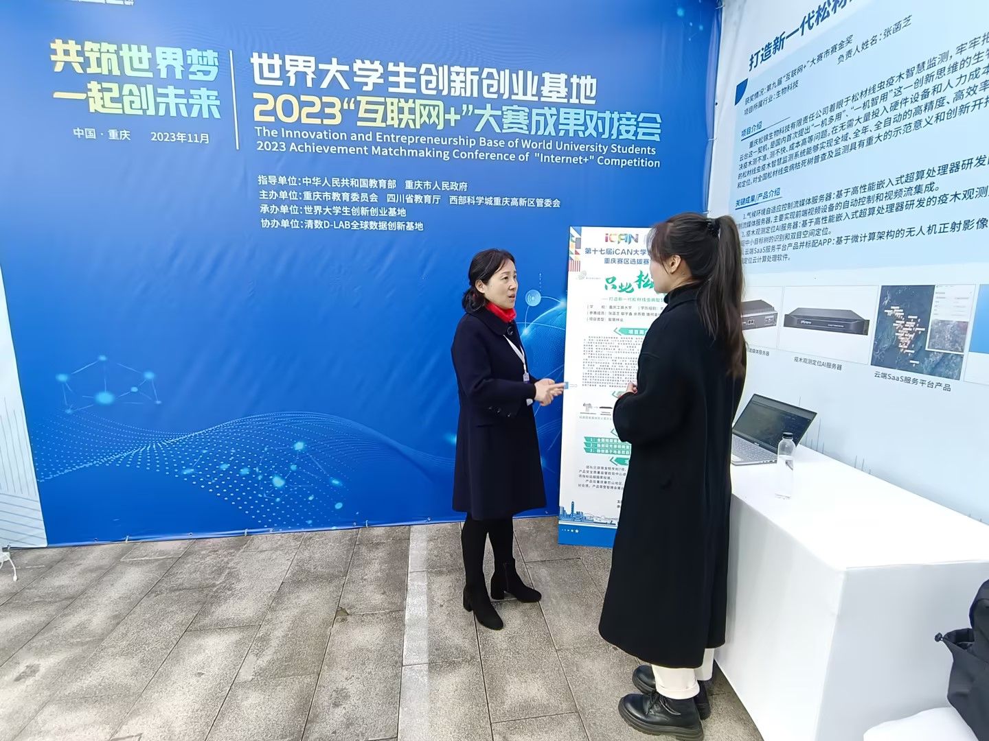 11月16日,由教育部和重庆市政府指导,重庆市教委、四川省教育厅和重庆高新区共同举办的“世界大学生创新创业基地2023‘互联网+’大赛成果对接会”在西部(重庆)科学城大创谷·梦花园举办。万象城官网第九届“互联网+”大赛国赛入围项目“只此松绿——打造新一代松材线虫疫木智慧监测系统”项目受邀参加。