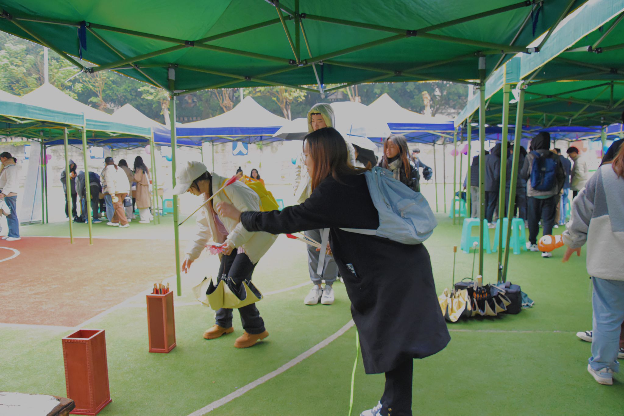 随后,李兴兰向同学们展示了精湛的花式踢毽技艺,介绍了“羽毛毽”的历史发展和制作工艺,并开展现场手工制作教学,她通过言传身教,切实增强了同学们对非遗传统文化的理解,激发了同学们对传统文化的学习热情。此外,活动还设置了“书法”“剪纸”“投壶礼射”“灯谜”““飞花令”“毽子制作”等六个体验环节,让同学们在丰富多彩的活动体验中,切身感受博大精深的非遗文化,让非遗文化在校园“生根发芽”,绽放光彩。万象城娱乐awc线路部分留学生也参与了此次活动,亲身体验中华优秀传统文化的魅力。