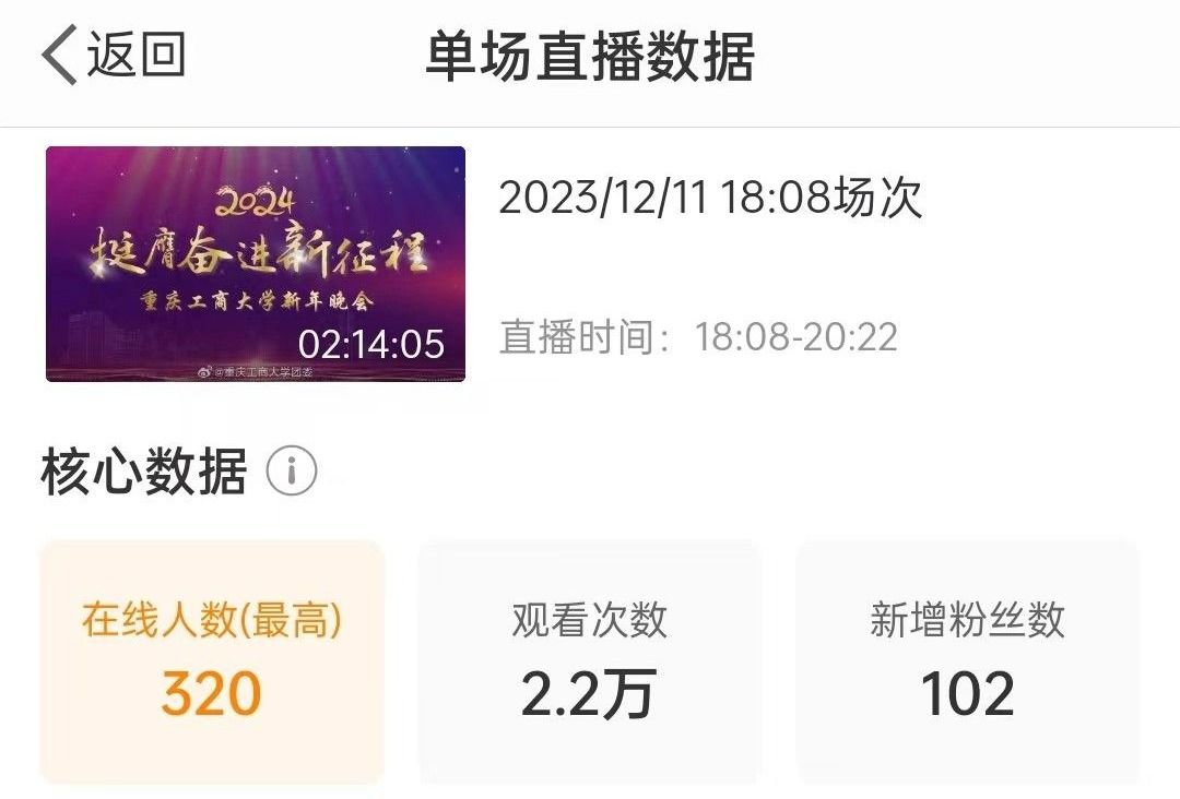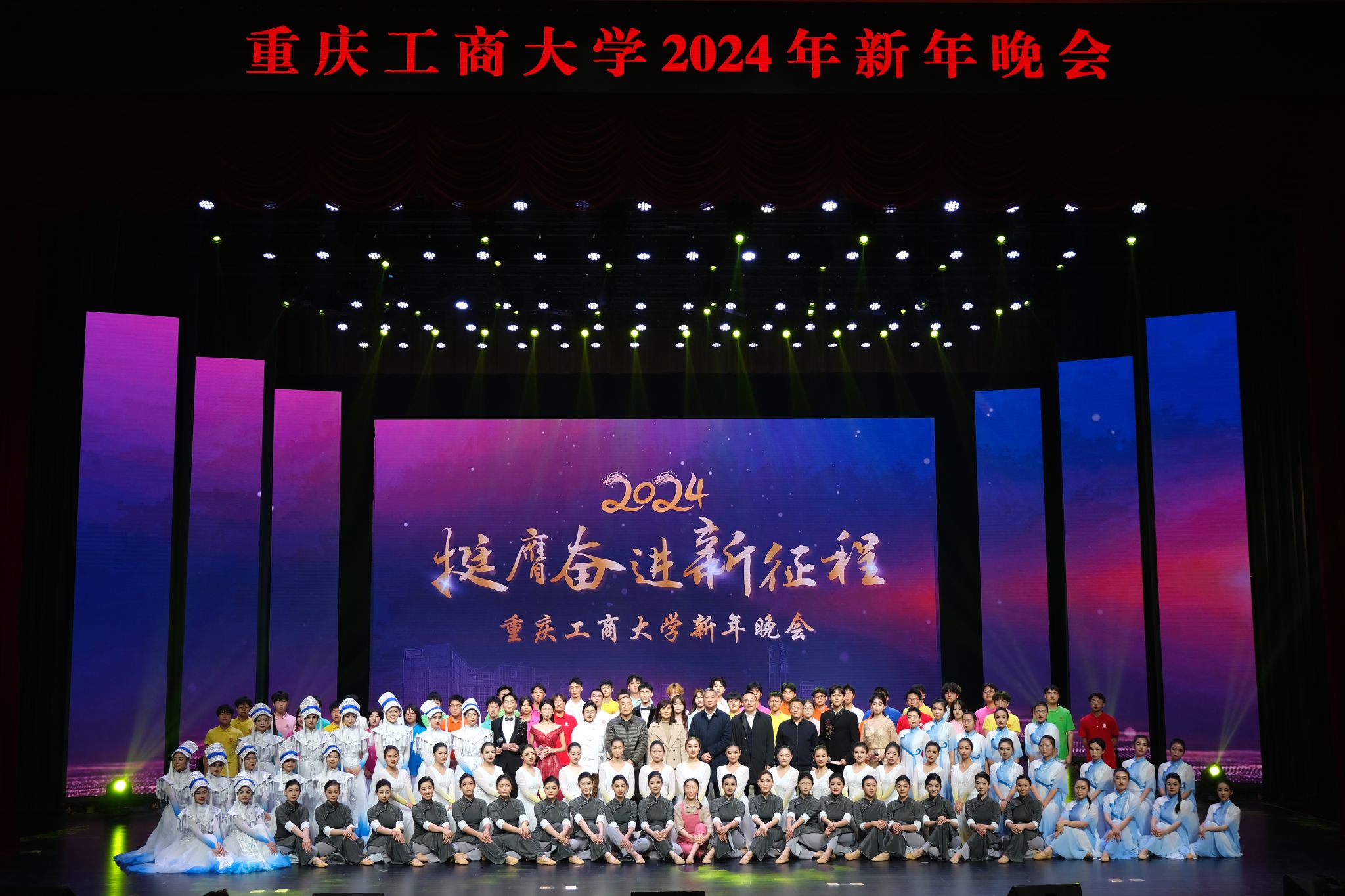 12月11日晚,“挺膺奋进新征程”万象城娱乐awc线路2024年新年晚会在万象城官网剧场隆重举行。校长温涛,党委常委、副校长李国军,党委常委、纪委书记、重庆市监委驻学校监察专员张海燕,党委常委、宣传部部长华杰,党委常委、统战部常务副部长陈松,教务处处长骆东奇,校团委书记吴佑波,校团委副书记胡婧婷,与全校近千名师生代表欢聚一堂,齐享视听盛宴。本次新年晚会汇聚歌曲、戏剧、舞蹈、朗诵等艺术形式,多个重庆市第七届大学生艺术展演活动一等奖节目登台演出,是万象城官网美育教学成果的集中演示,美育育人成效显著。同时,校团委官方微博对晚会进行全程线上直播,师生、校友、学生家长在线观看人数达2.2万人,重工商大人线上线下欢聚一堂,共同启航新年。