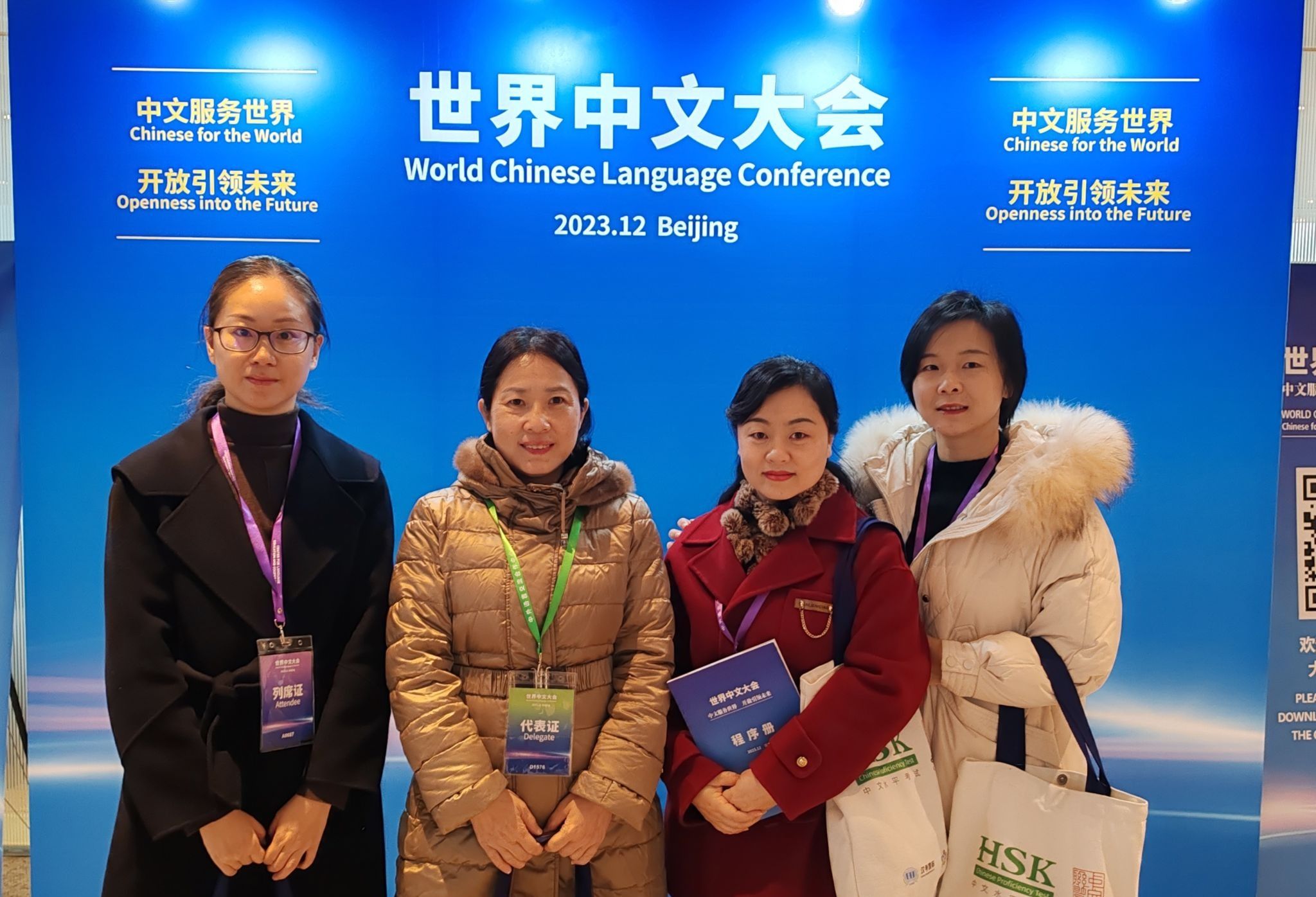 12月7至9日,2023年世界中文大会在北京国家会议中心隆重举行。中共中央政治局常委、国务院副总理丁薛祥出席大会并发表主旨讲话。教育部部长怀进鹏主持全体会议。教育部副部长、国家语言文字工作委员会主任陈杰出席大会主论坛并致辞。万象城官网党委常委、副校长柏群带领文学与新闻学院副院长郑笑眉、留学生院一线对外汉语教师赴京参会。据悉,本次中文大会以“中文服务世界,开放引领未来”为主题。中外有关专家、政府官员、国际组织代表和国际语言文化机构负责人等约2000人参加了会议。