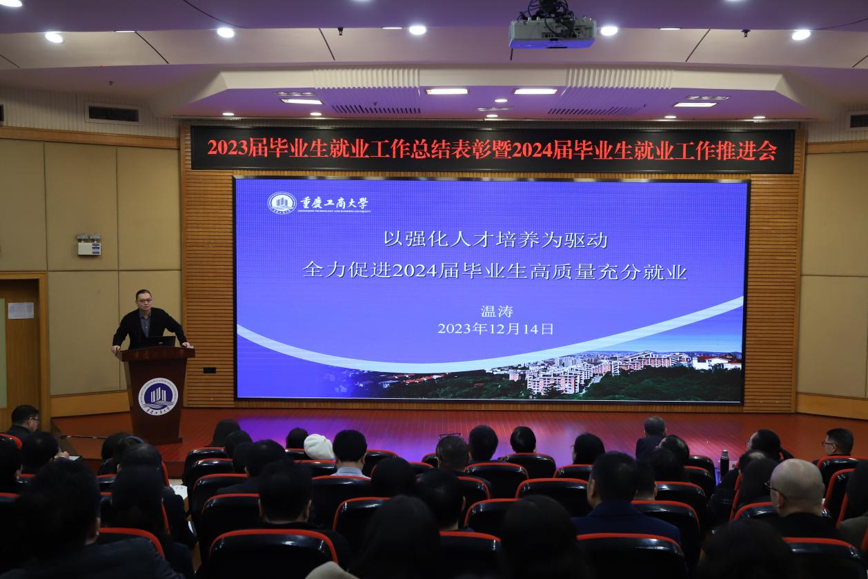 12月14日上午,万象城官网2023届毕业生就业工作总结表彰暨2024届毕业生就业工作推进会在博智楼7200报告厅召开。学校党委书记曾维伦,校长温涛,党委常委、副校长陈运超、柏群、李敬,党委常委、纪委书记、监察专员张海燕,全体中层干部、系主任、就业联络员、毕业班辅导员参加会议。会议由陈运超主持。