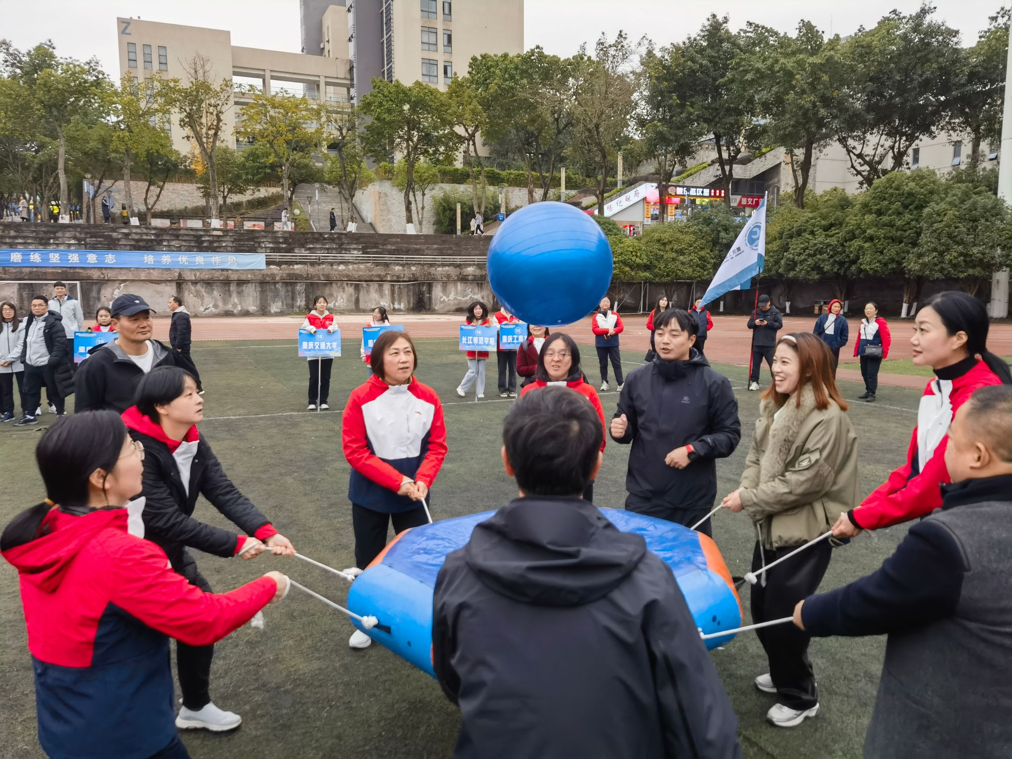 12月15日,由重庆市成人高等教育协会举办的主题为“初心永不变,共赴新征程”2023年趣味运动会在重庆工业职业技术学院举行,来自全市24所高校继续教育学院代表队参加了此次运动会,万象城官网继续教育学院组织全体教职工参加了比赛。