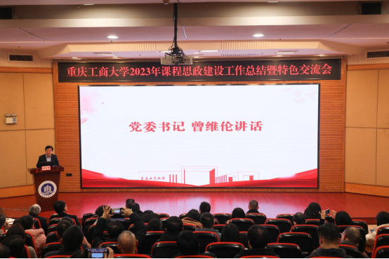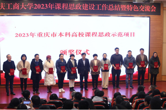 学校党委常委、宣传部部长华杰宣读2023年度高校课程思政建设获奖个人和团队名单。党委书记曾维伦为获评2023年重庆市本科高校课程思政示范项目颁奖。