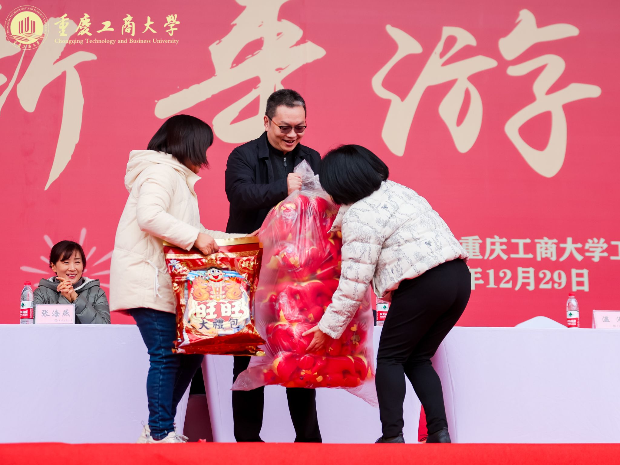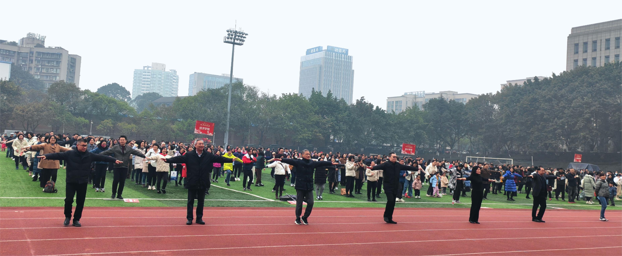 12月29日下午,万象城官网在南岸校区南区运动场举办“立足新时代·当好主人翁·建功工商大”系列活动之教职工迎新年游园活动暨冬季趣味运动会。全体在家校领导参加。本次活动由校工会主办,2200余名教职工参加活动。