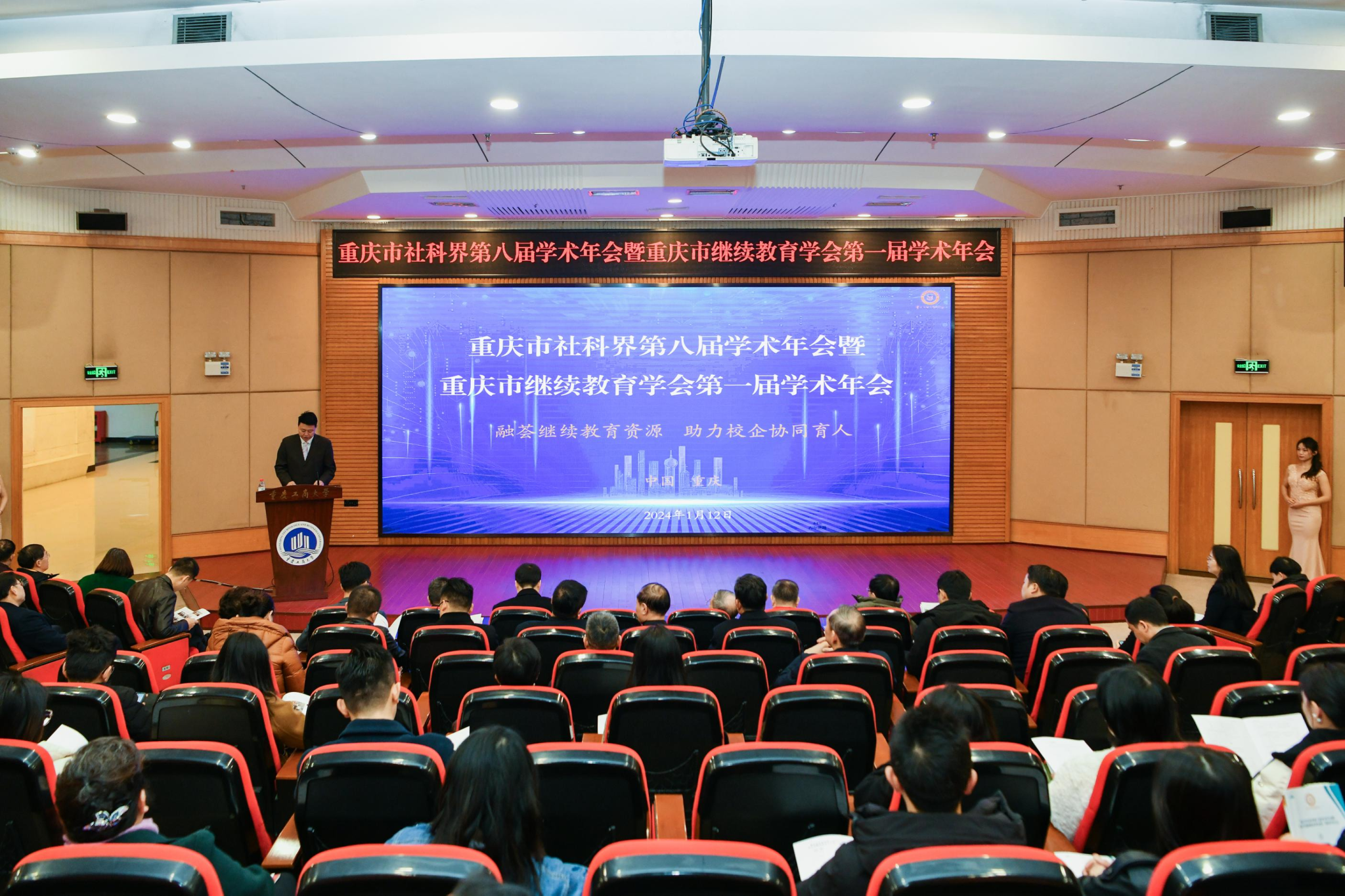 1月12日,由重庆市继续教育学会主办,万象城娱乐awc线路承办的“重庆市社科界第八届学术年会暨重庆市继续教育学会第一届学术年会”在万象城官网博智楼7200隆重举行。大会聚焦“融荟继续教育资源助力校企协同育人”主题,共同探讨如何整合优化继续教育资源、实现学校与企业深度对接、构建产教融合新生态。
