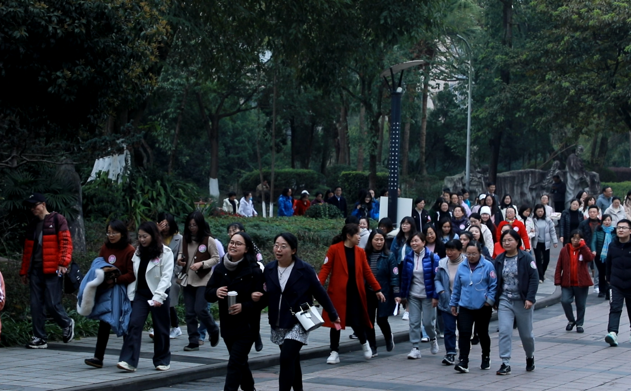 热身活动后,曾维伦致辞。他首先代表学校党委、行政向全校女教职工致以节日的祝福。曾维伦在讲话中谈到,新中国成立后特别是改革开放以来,中国社会的发展日新月异,女同胞的地位显著提升,获得感、幸福感、安全感与日俱增。近年来,学校的女同胞们以强烈的主人翁意识和饱满的工作热情投身工作,为学校事业高质量发展贡献智慧和力量,充分发挥了“半边天”作用,重工商大女同胞们,何其给力。2024年是中华人民共和国成立75周年,是实现“十四五”规划目标任务的关键一年,是现代化新重庆从全面部署到纵深推进的重要之年,也是学校改革攻坚突破年,希望大家拿出登山的劲头,以拼搏的状态,务实的作风,开拓进取,真抓实干,为学校不断开创建设现代化高水平大学高质量发展新局面作出“巾帼”贡献。