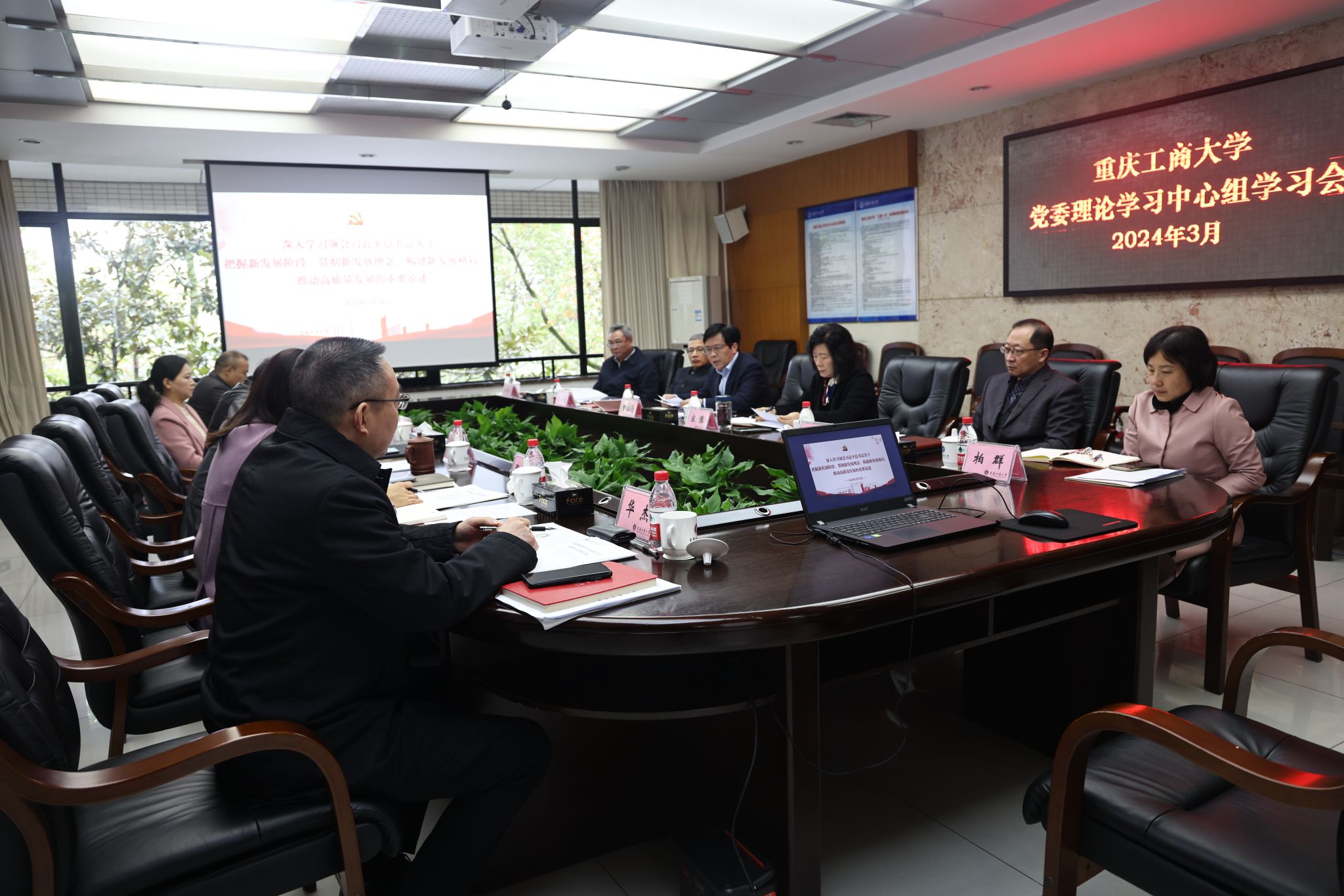 3月19日上午,万象城官网党委理论学习中心组举行专题学习会,深入学习领会习近平总书记关于把握新发展阶段、贯彻新发展理念、构建新发展格局、推动高质量发展的重要论述,学习贯彻习近平总书记在2024年全国两会期间重要讲话精神,深刻领会习近平总书记关于因地制宜加快发展新质生产力论述的精髓要义,进一步增强坚决拥护“两个确立”、坚决做到“两个维护”的思想自觉、政治自觉、行动自觉,积极投身科教兴国战略,主动服务国家重大战略部署和重庆科技创新和人才强市战略,为贯彻新发展理念,发展新质生产力贡献智慧和力量。