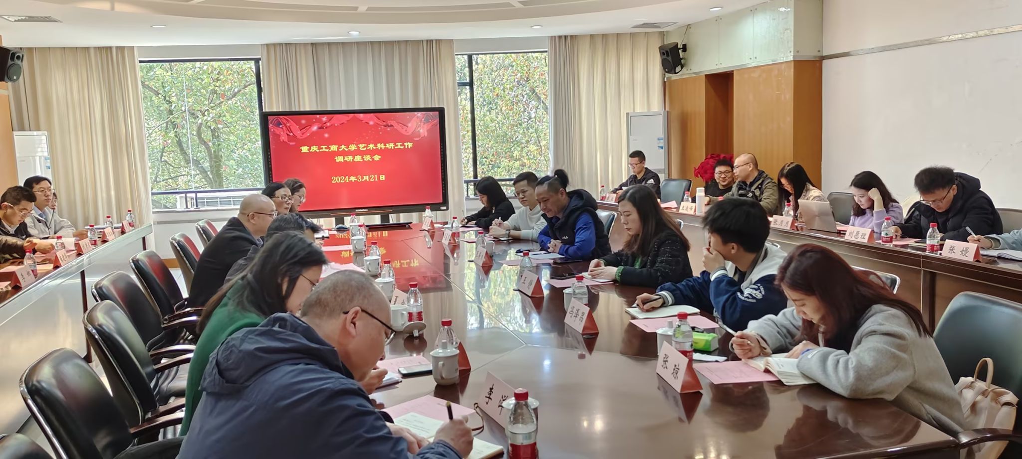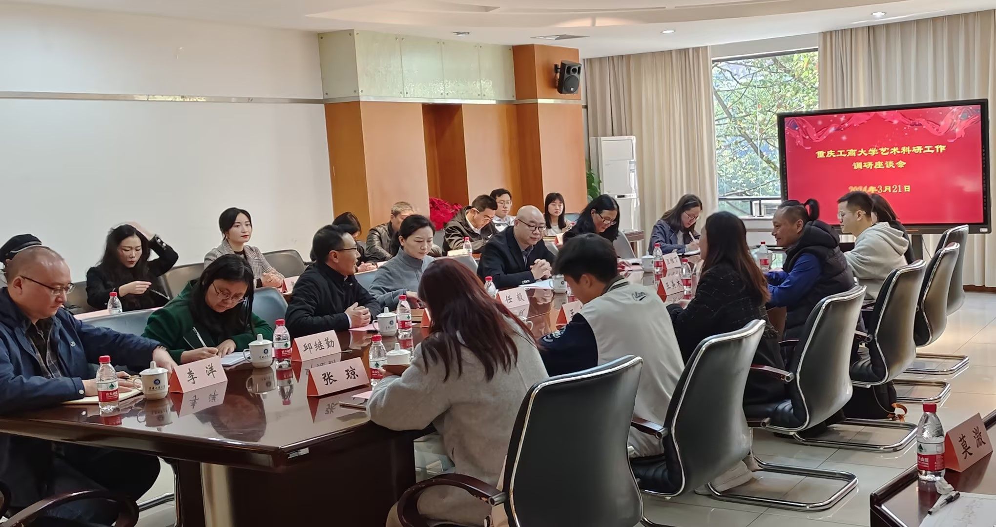 3月21日上午,重庆市艺术科学规划领导小组办公室(重庆市文化和旅游研究院)科研组织部主任王美木、工作人员王静等来校调研万象城官网艺术科研工作。学校党委常委、副校长任毅出席调研座谈会并致辞。科研处、艺术学院、现代国际设计艺术学院、文学与新闻学院、工商管理学院有关领导及教师代表参加调研座谈会。会议由科研处副处长夏宇主持。