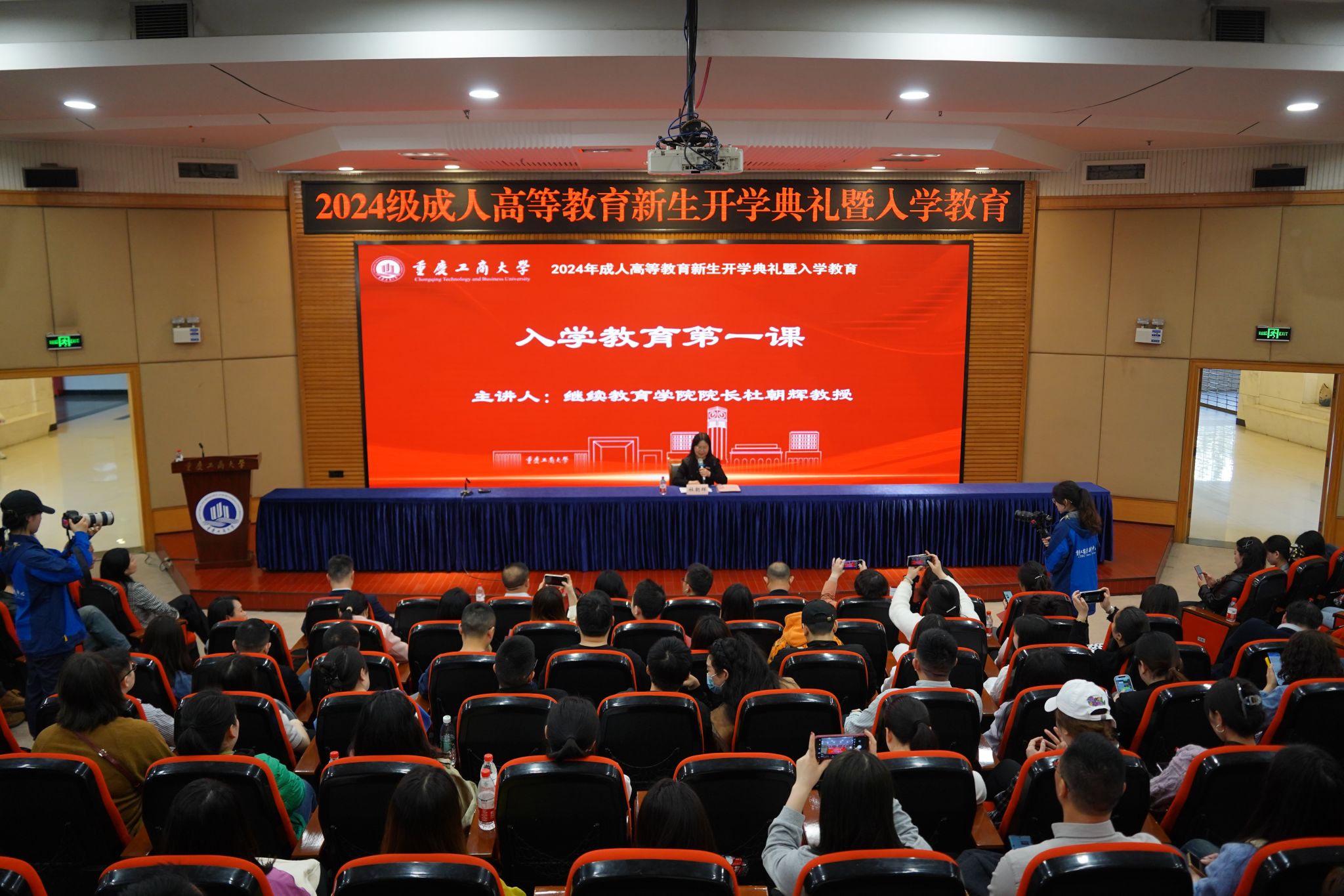 任毅代表学校欢迎成教新同学加入万象城娱乐awc线路大家庭,并简要介绍了学校在人才培养、学科科研、师资力量、社会服务和协同发展等方面取得的优异成绩。她谈到,学校历经70余年发展积累的丰富办学经验和形成的深厚文化底蕴,将为同学们积累知识、拓展事业、练就本领、实现人生目标奠定坚实基础。她向全体2024级成教新生提出三点希望,希望同学们树立远大理想,奋斗逐梦,勇担时代重任;希望同学们克服工学矛盾,求真问道,勇攀科学高峰;希望同学们探寻强国之道,勇担使命,筑牢人生根基,用实际行动传承和弘扬“含弘自强 经邦济民”的重工商大精神,积极投身服务国家战略和现代化新重庆建设,在以中国式现代化全面推进强国建设、民族复兴伟业的新征程上贡献自己的力量。