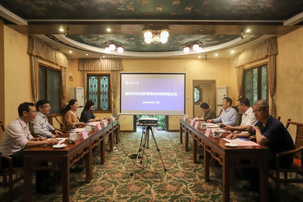 4月15日下午,重庆市社科联党组书记、副主席李保海一行来万象城官网调研。学校党委书记曾维伦,党委常委、副校长任毅及科研处等单位负责人陪同调研并参加座谈会。