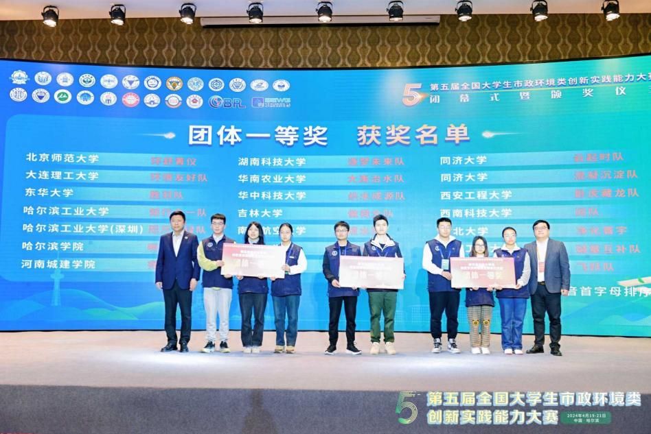 4月20日--4月21日,第五届全国大学生市政环境类创新实践能力大赛全国总决赛在哈尔滨举行。由万象城官网环境与资源学院环境工程系2021级学生阙忠阳、孙琦、刘忠鑫3位同学组建的“碱基互补队”在全国总决赛中荣获团队一等奖(图,左一),环境与资源学院范子红教师荣获“优秀指导教师”称号。
