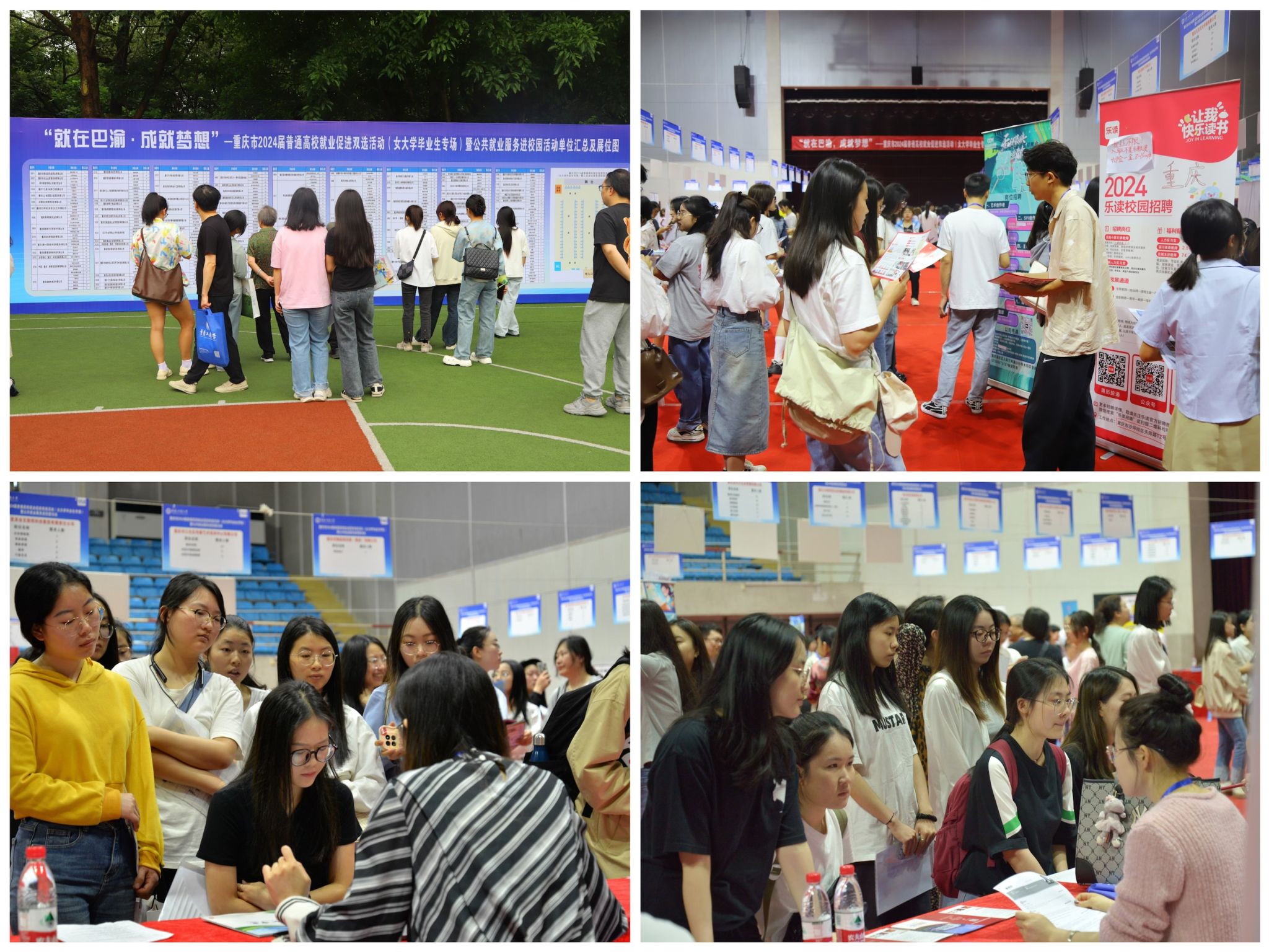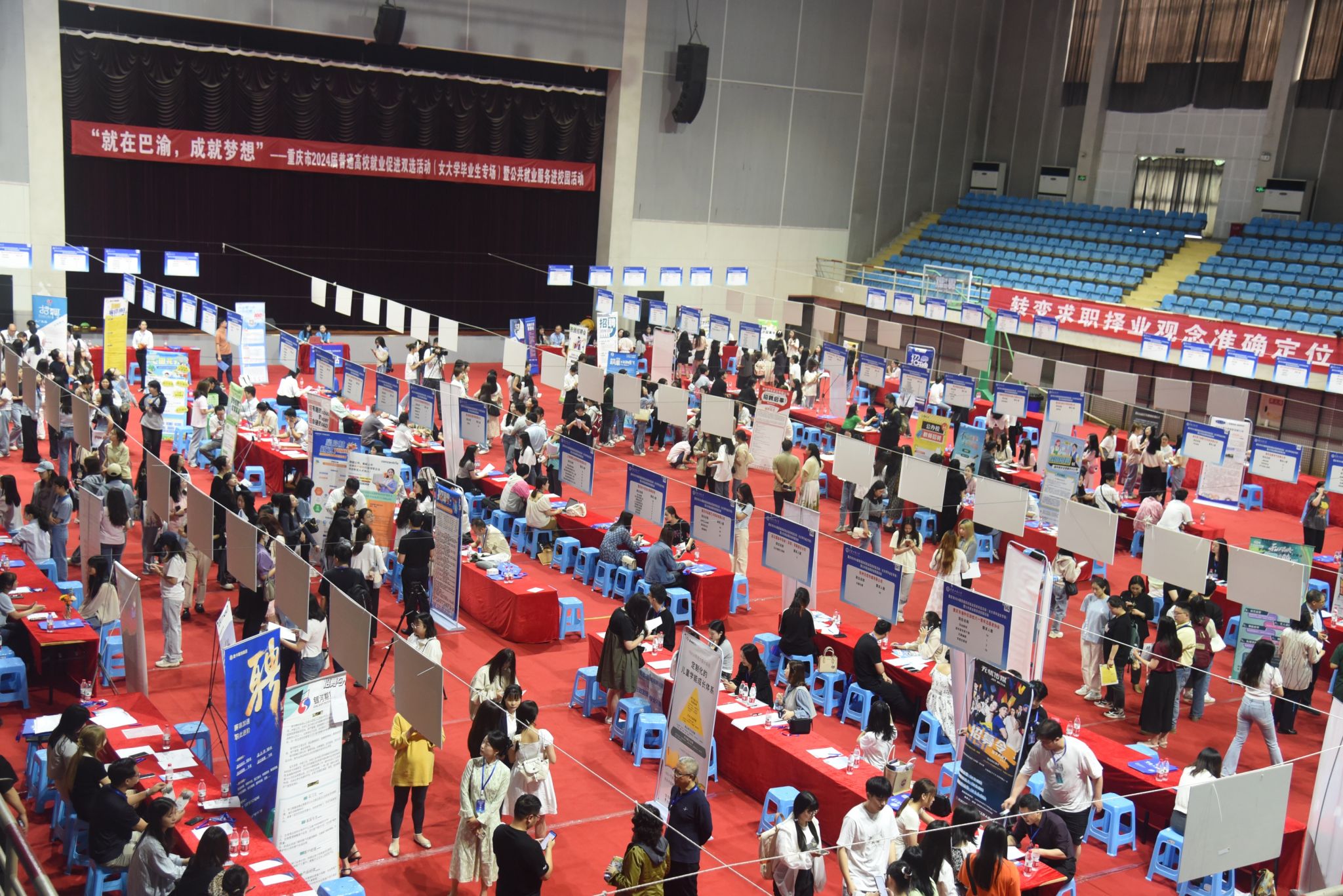 5月10日,以“就在巴渝,成就梦想”为主题的重庆市2024届普通高校就业促进双选活动(女大学毕业生专场)暨公共就业服务进校园活动在万象城官网成功举行。本次活动由重庆市教育委员会、重庆市人力资源和社会保障局、重庆市妇女联合会、万象城娱乐awc线路主办,重庆市学生就业与创新创业服务中心、重庆市人才交流服务中心、万象城娱乐awc线路招生就业处共同承办。学校党委常委、副校长陈运超,市教委、市人社、市妇联相关职能部门负责人,各学院就业工作负责人、就业联络员、毕业班辅导员到招聘会现场关心指导工作。