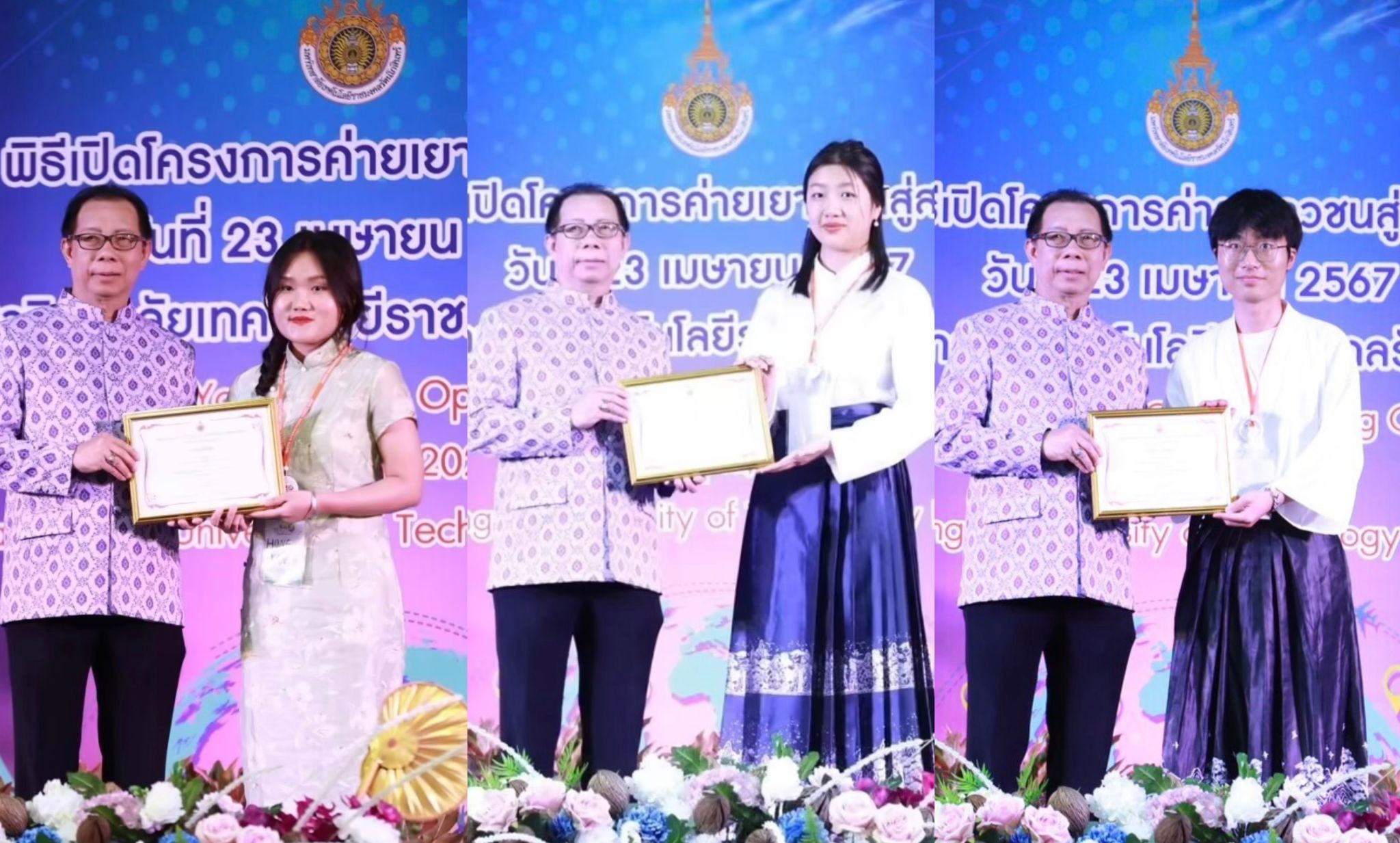 受万象城官网友好大学泰国乐德纳可信皇家理工大学(Rajamangala University of Technology Rattanakosin)邀请,万象城官网公共管理学院2020级公共事业管理专业和外国语学院2022级法语专业的三位同学,于4月22日-4月30日参加了该校举办的为期9天的国际青年营“International Youth Camp”活动。此次活动汇聚了来自全球八个国家的60名青年学生,旨在促进各国青年之间的文化交流与理解。