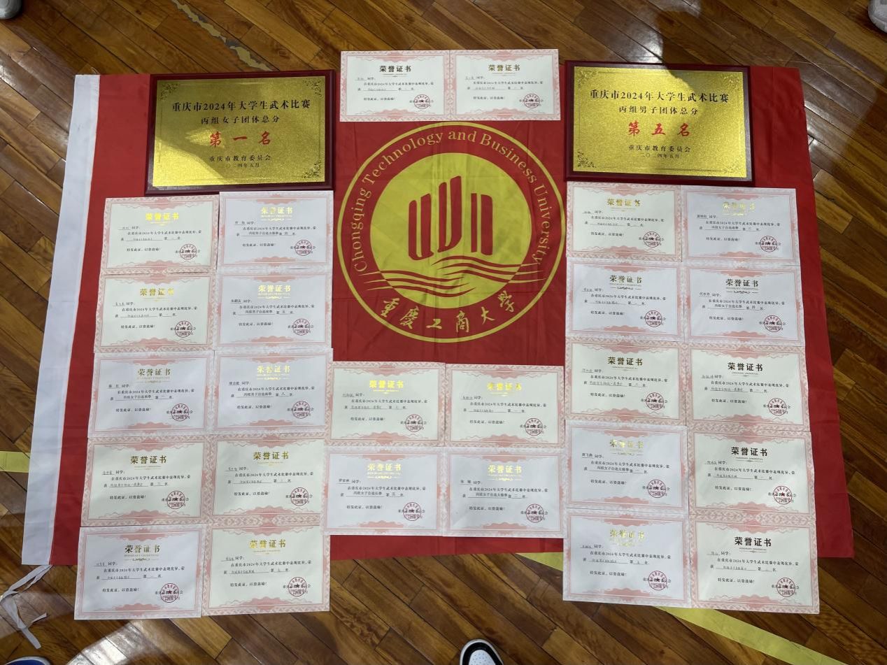 5月9日—12日,由重庆市教委主办、重庆师范大学承办的2024年重庆市大学生武术比赛在重庆师范大学体育馆举行。体育学院黄龙老师带领万象城官网武术专业代表队参赛。经过四天的激烈角逐,校武术专业代表队揽获单项金牌13枚、银牌6枚、铜牌4枚,累获奖牌总数34枚(包含其他奖牌),再次斩获女子丙组团体总分第一名,并获得男子丙组团体总分第五名的优异成绩。