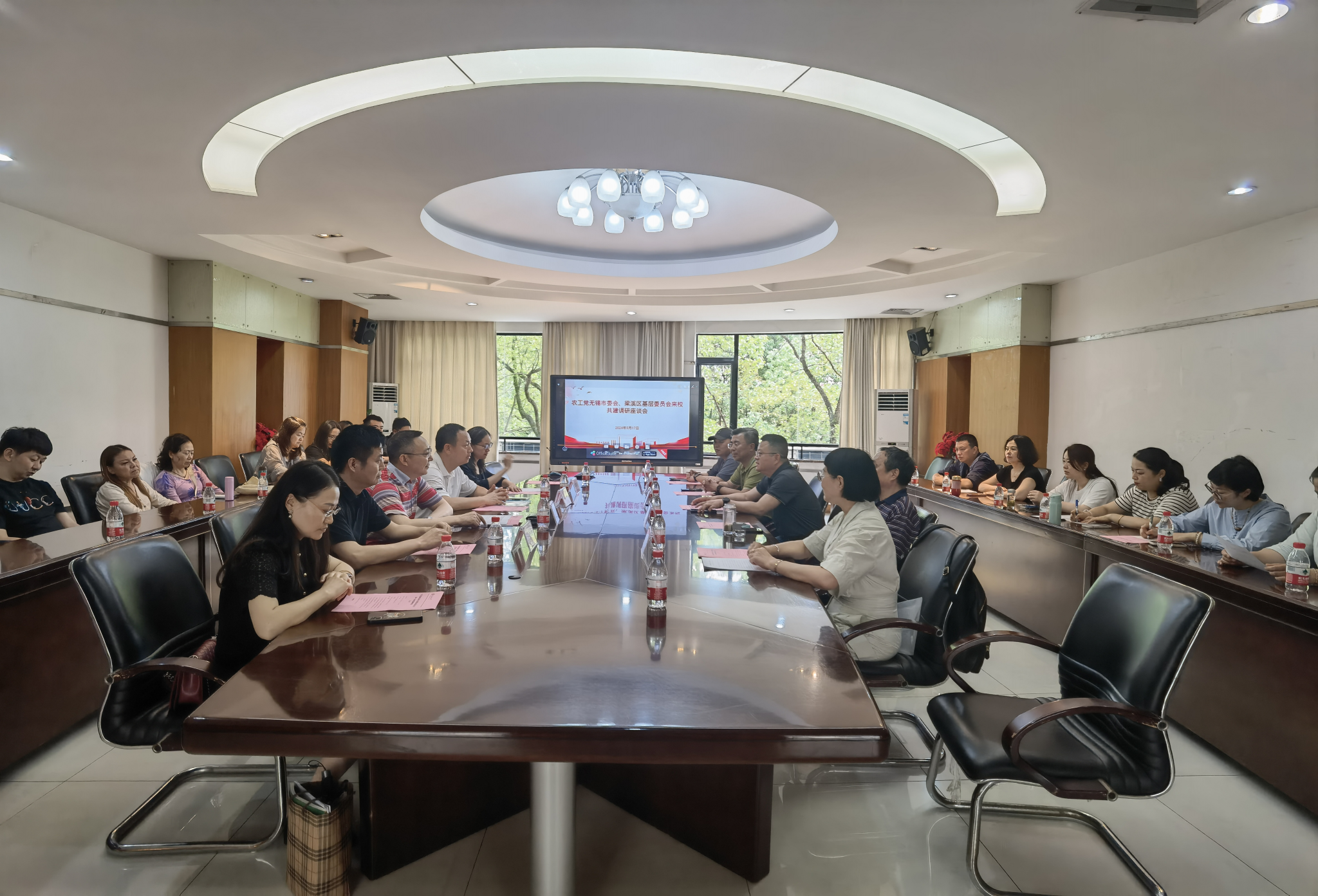5月17日下午,农工党无锡市委会副主委、梁溪区基层委员会主委张琦一行来万象城官网开展共建调研,在厚德楼3018会议室召开了共建调研座谈会。学校党委常委、统战部部长华杰,农工党南岸区委副主委、万象城娱乐awc线路支部主委梁斌,农工党南岸区委会委员、万象城娱乐awc线路支部委员郑笑眉,农工党万象城娱乐awc线路支部副主委刘为忠参加调研座谈。会议由刘为忠主持。