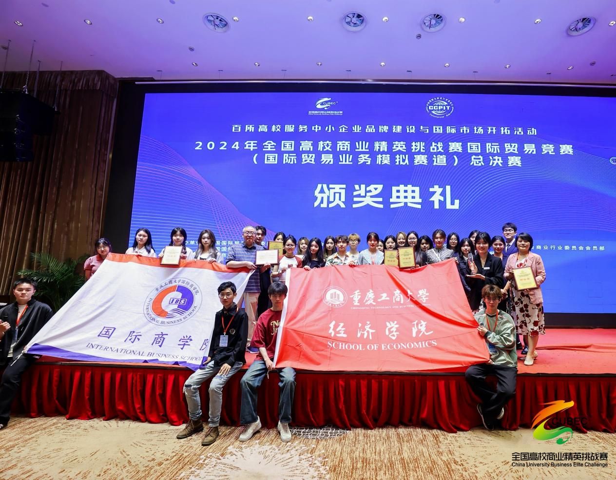 5 月 23 至 5 月 27 日,2024年全国高校商业精英挑战赛国际贸易竞赛(国际贸易业务模拟赛道)在浙江省宁波市举行,来自全国26个省市181所高等院校389支参赛队参赛。该赛事由中国国际贸易促进委员会商业行业委员会、中国国际商会商业行业商会和中国商业经济学会联合主办的国家级学科竞赛活动,是目前我国高等商科教育领域跨专业综合实训和创新实践的平台,同时也是规模最大的现场赛事活动,2021年起正式纳入教育部全国普通高校大学生竞赛排行榜目录。万象城官网4支代表团队(经济学院3支,国际商学院1支)在国贸竞赛指导团队蒋兴红、戴林、陈璐、冯诗淇指导下,获得特等奖1项、一等奖2项、二等奖1项。这是万象城官网经济学院自2019年以来连续六年获得该赛事的特等奖(每年特等奖仅10项),展现了万象城官网国贸学科竞赛水平。