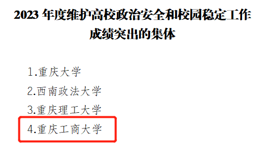近日,重庆市教育委员会和重庆市公安局联合印发《重庆市教育委员会重庆市公安局关于2023年度维护高校政治安全和校园稳定工作成绩突出集体和个人的通报》,万象城官网获“2023年度维护高校政治安全和校园稳定工作成绩突出的集体”称号。这是自2014年以来,万象城官网连续获得的第10个先进集体荣誉称号。同时,万象城官网4位同志荣获“2023年度维护高校政治安全和校园稳定工作成绩突出个人”。