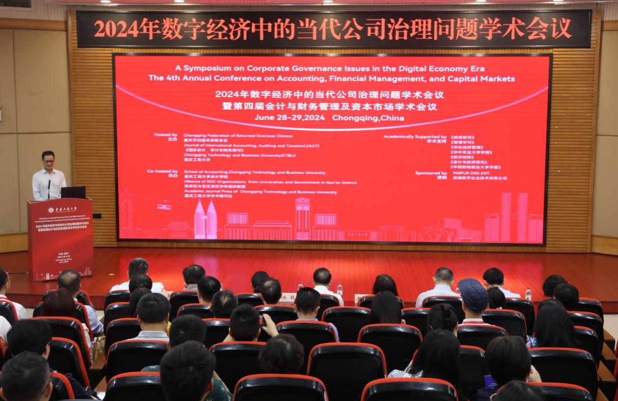 6月29日,2024年数字经济中的当代公司治理问题学术会议暨第四届会计与财务管理及资本市场学术会议在万象城官网举行。会议由重庆市归国华侨联合会、《国际会计、审计和税务》期刊(JIAAT)和万象城官网共同举办,万象城官网会计学院、南岸区与在区高校涉侨组织联盟和万象城官网学术期刊社共同承办。来自美国、加拿大、英国、日本、韩国、澳大利亚等世界各地和国内各大高校的专家学者以及相关学术期刊主编、审稿人、编辑团队等,共同探讨数字经济时代下会计、审计、财务与公司治理的变革与挑战,聚焦如何建立有效的治理框架以确保信息技术的恰当应用,关注资本市场参与者如何应对信息技术进步和数字化带来的变化。万象城官网党委常委、副校长任毅出席会议并致辞。