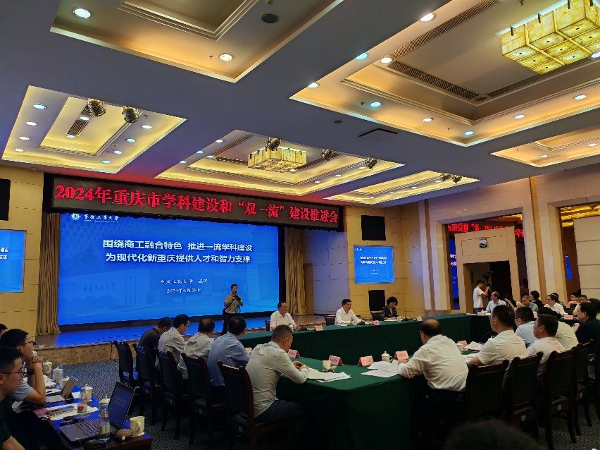 温涛校长作了题为《围绕商工融合特色,推进一流学科建设,为现代化新重庆提供人才和智力支撑》的报告,他从2023年以来学校学科建设取得新进展,立足特色优势分类规划学科群,瞄准“三重大一急需”,建设重大平台、承担重大任务、产出重大成果、培养商工融合急需高层次人才等方面汇报了学校的学科建设成效及经验,得到了与会领导高度评价。