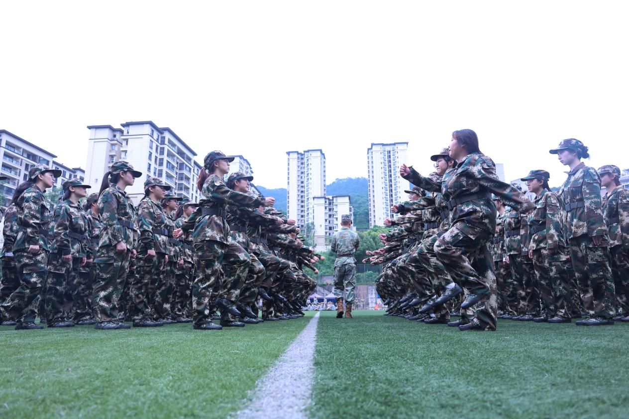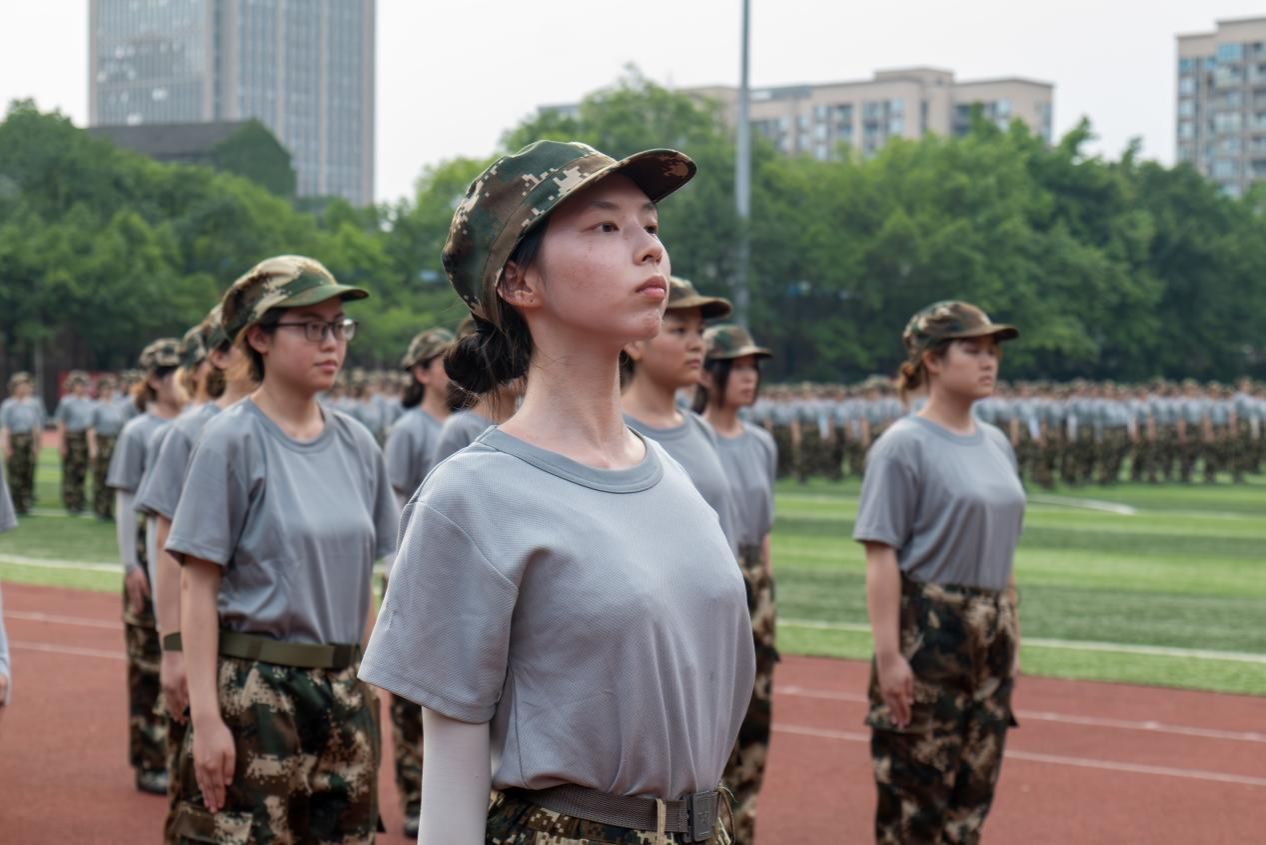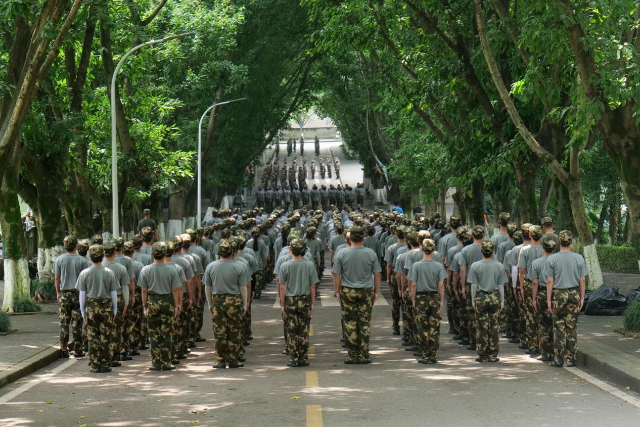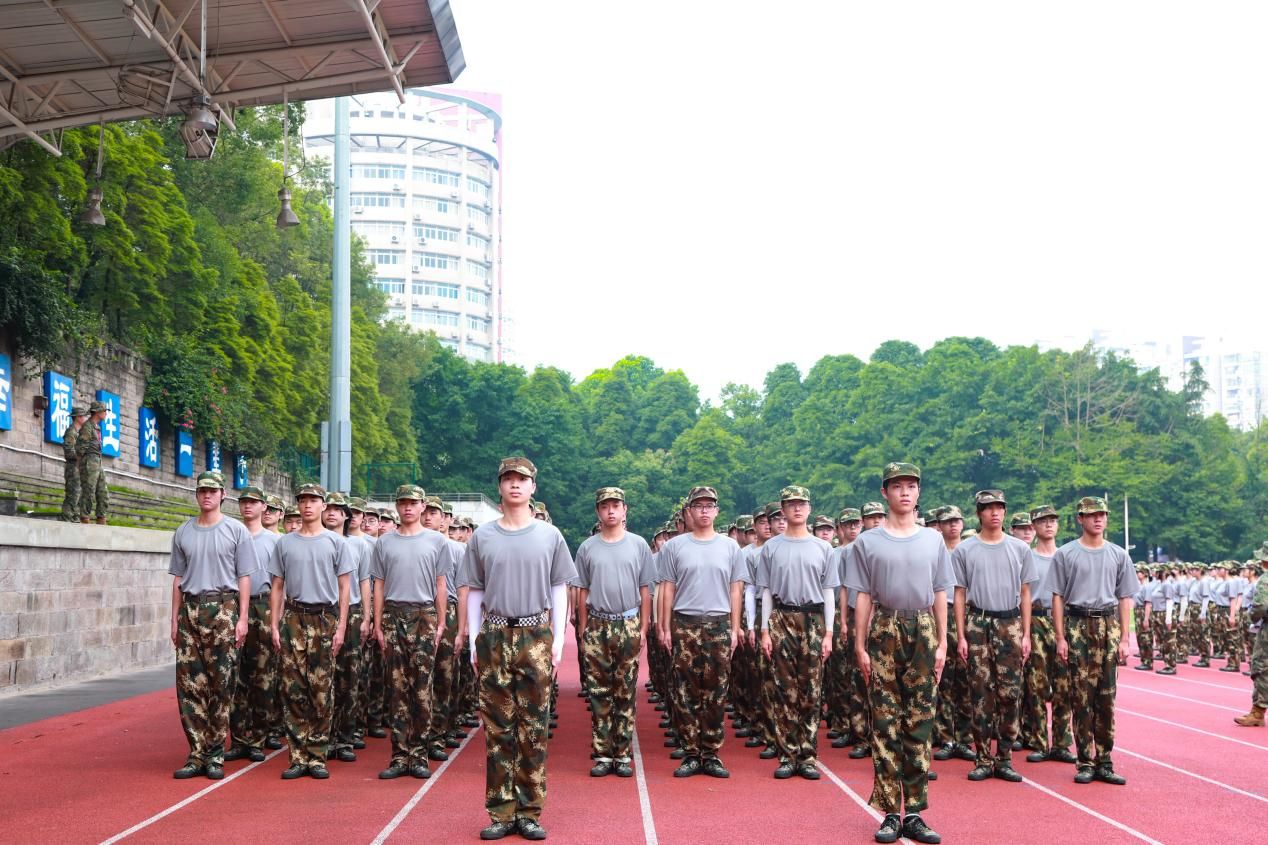 操场上,一群朝气蓬勃的重工商大学子,身着统一的迷彩服,踏着坚定的步伐,用汗水书写着青春最亮丽的篇章。