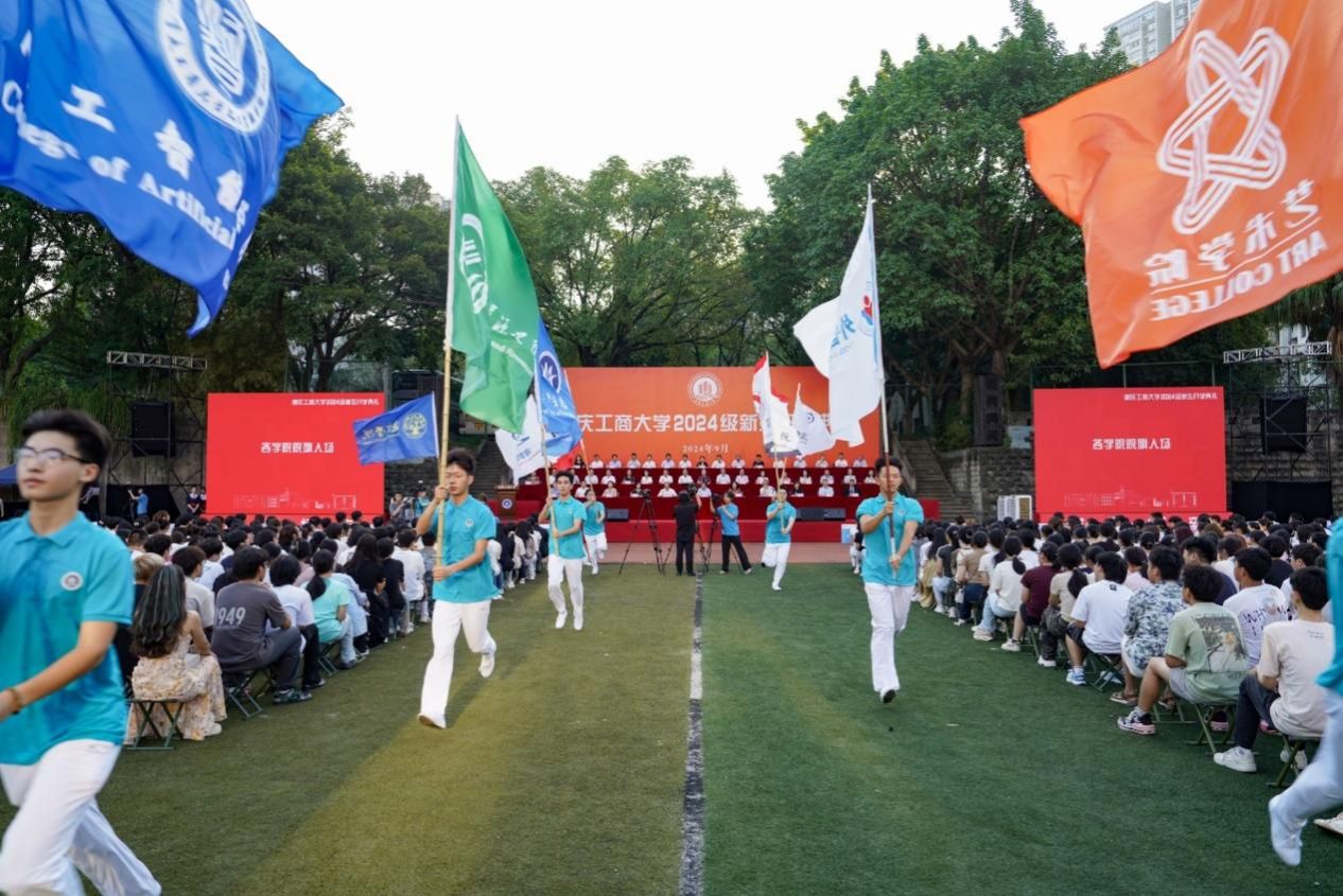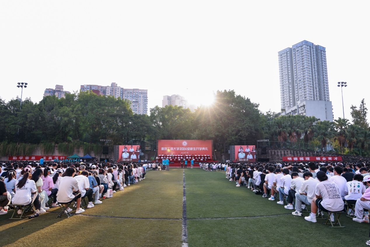 开学典礼在学校官方抖音号和视频号同步直播,南岸校区、兰花湖片区组织2024级新生在教室集中收看。