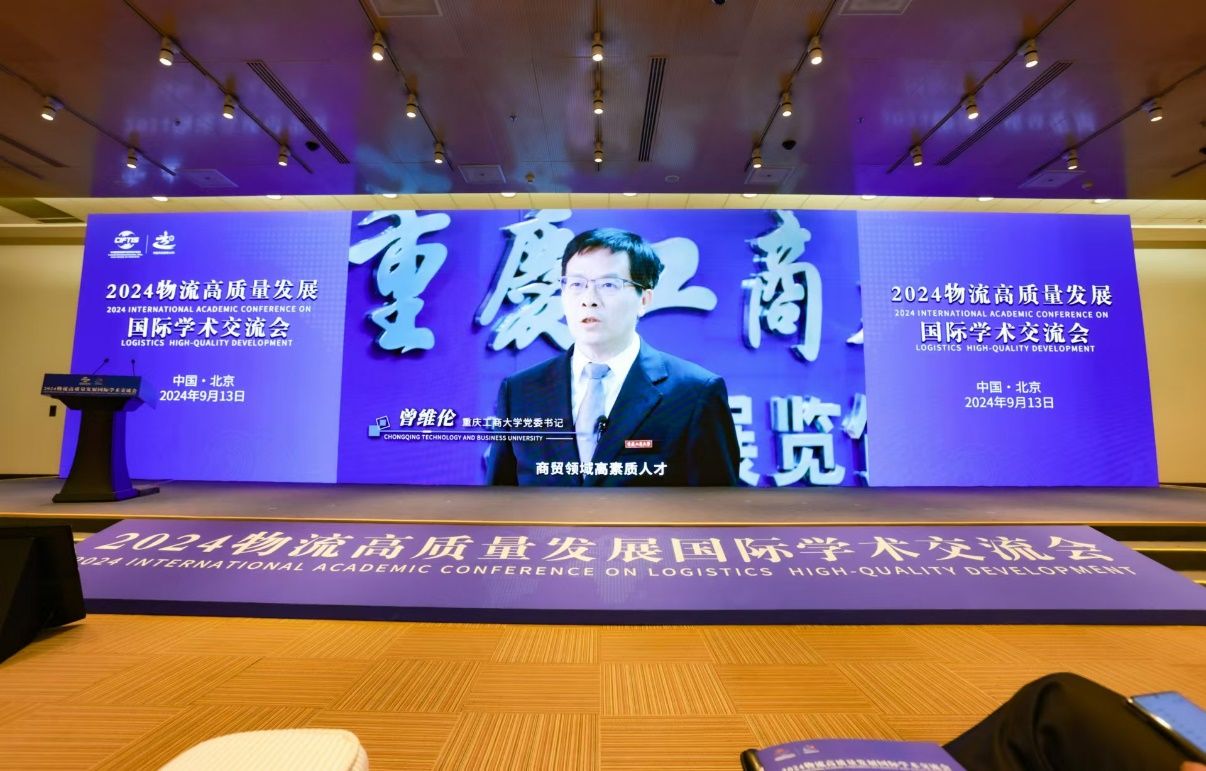 9月13日,“2024物流高质量发展国际学术交流会”在北京国际会议中心举行。商务部党组成员、副部长盛秋平,北京市副市长司马红,中美物流联合会常务副会长劳尔·邓汉姆,中国物流集团党委副书记、总经理廖家生,中国物流与采购联合会副会长、中国物流学会会长任豪祥、京津冀商务主管部门相关负责同志出席会议。来自北京工商大学、浙江工商大学、天津商业大学、哈尔滨商业大学、安徽财经大学、北京物资学院、兰州财经大学、北京服装学院等兄弟高校的领导及行业协会、企业嘉宾代表等参加了会议。学校党委书记曾维伦参加会议并作主题发言。