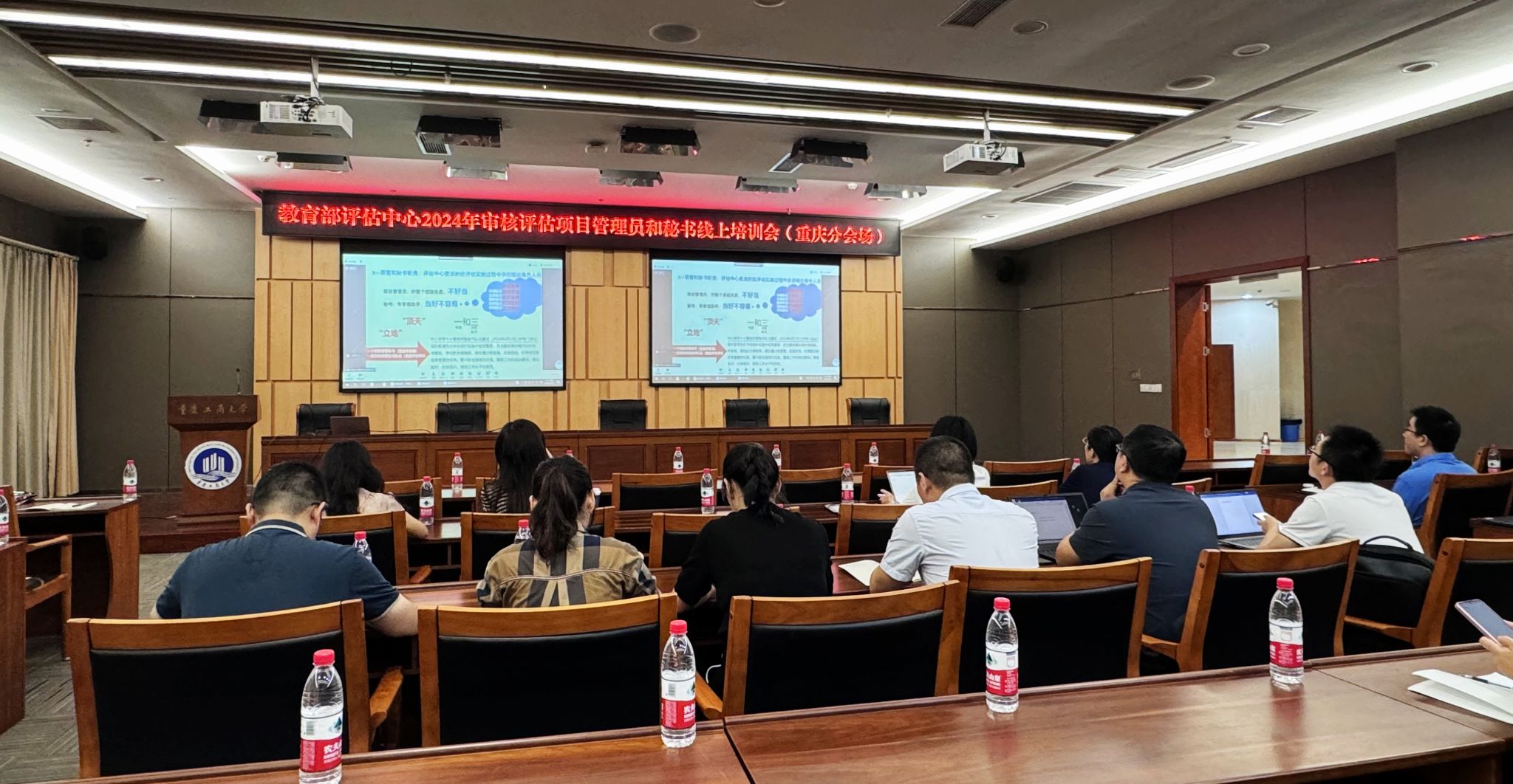 9月27日上午,教育部教育质量评估中心举办了2024年审核评估项目管理员和秘书的线上培训会,按照“一省一账号”原则,重庆市分会场设在万象城官网,市内各高校拟担任2024年审核评估项目管理员和秘书的教师来校参加了线下集中学习,会场设在万象城官网图书馆一会议室。教学质量监督与评估中心承办了该次培训会重庆分会场组织工作。