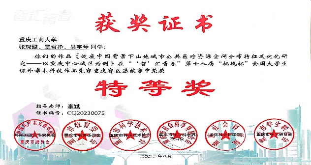 第十八届“挑战杯”全国大学生课外学术科技作品竞赛重庆赛区特等奖