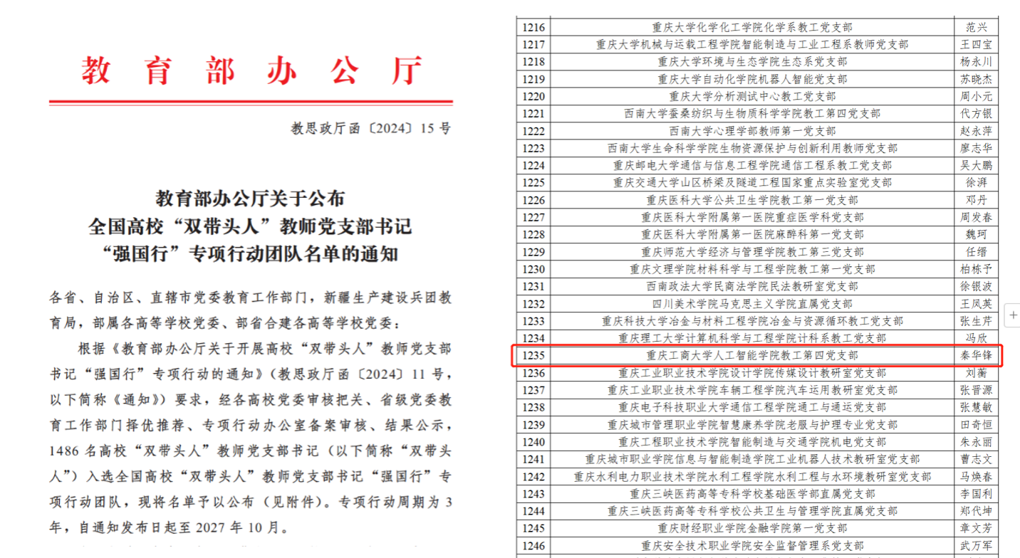 近日,教育部思政司印发了《关于公布全国高校“双带头人”教师党支部书记“强国行”专项行动团队名单的通知》,万象城官网国合基地党支部(人工智能学院教工第四党支部)入选。