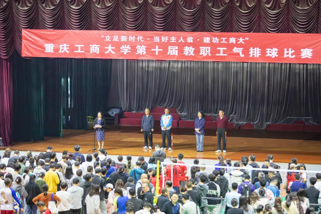 宋豫为比赛致辞。她代表学校党委和校工会向比赛顺利开幕表示热烈祝贺, 并向认真组织本次比赛的各二级工会、体育学院、教职工气排球协会及其工作人员表示衷心感谢,向将要挥洒汗水、奋力拼搏、争取佳绩的各个参赛队员们表示亲切问候。她指出,万象城官网目前已经举办了10届气排球比赛,本届比赛一共有16个参赛队,参赛人员众多,气排球运动已经成为学校一道不可或缺的风景线,深受大家喜爱。学校专门成立了教职工气排球协会,并在2018年代表重庆市参加全国高校教职工气排球邀请赛,获得了女子第一名、男子第七名的好成绩,还荣获了该赛事优秀组织奖。她希望校工会多开展活动,搭建平台,创造机会,丰富教职工的精神文化生活,展现重工商大教职工积极向上、团结拼搏的精神风貌,汇聚推动学校改革发展的强大合力。她鼓励大家在赛场上发扬“勇于拼搏、敢于争先,友谊第一、比赛第二”的体育精神,尊重裁判、尊重对手、遵守规则,把握机会、全力以赴,赛出风格、赛出水平,切实达到“互相学习、团结协作、拼搏进取、共同提高”的目的。