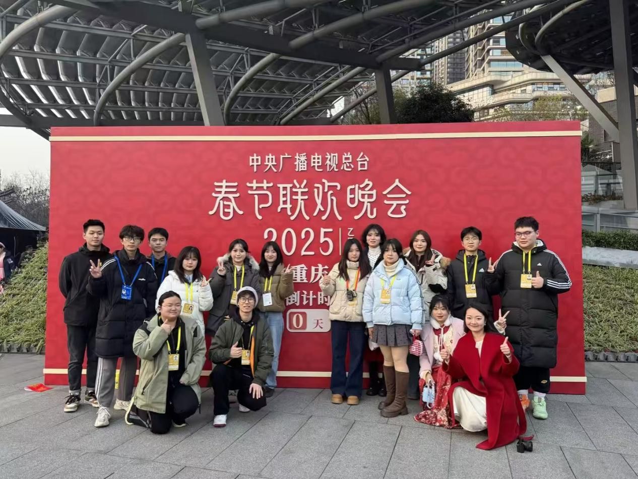34天的坚守中,涌现出很多动人瞬间。物资保障组志愿者陶砚浓连续服务至凌晨收工,保证每个节目顺利开演出;开场组程钰桢用专业与细致,在全程引导工作中保持零失误;演员组韩欣怡在零度江风中反复核对流程,冻红的双手始终紧握对讲机……“看到自己参与指挥的灯光点亮山城夜空,所有的疲惫都化作了自豪。”文新学院2023级研究生徐梓涵的感言,道出了志愿者们的共同心声。他们用专业与热忱,将“工商蓝”融入“春晚红”,为重庆分会场增添一份独特的魅力。